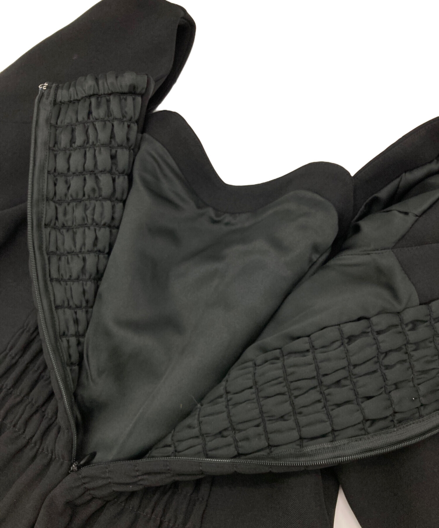 | 素材 | 表地:ポリエステル98% ポリウレタン2% 裏地:ポリエステル100% スカート: 表地:ポリエステル100% 基布(ブロック部分):ポリエステル レーヨン 裏地:ポリエステル100% 別布:ポリエステル100% |