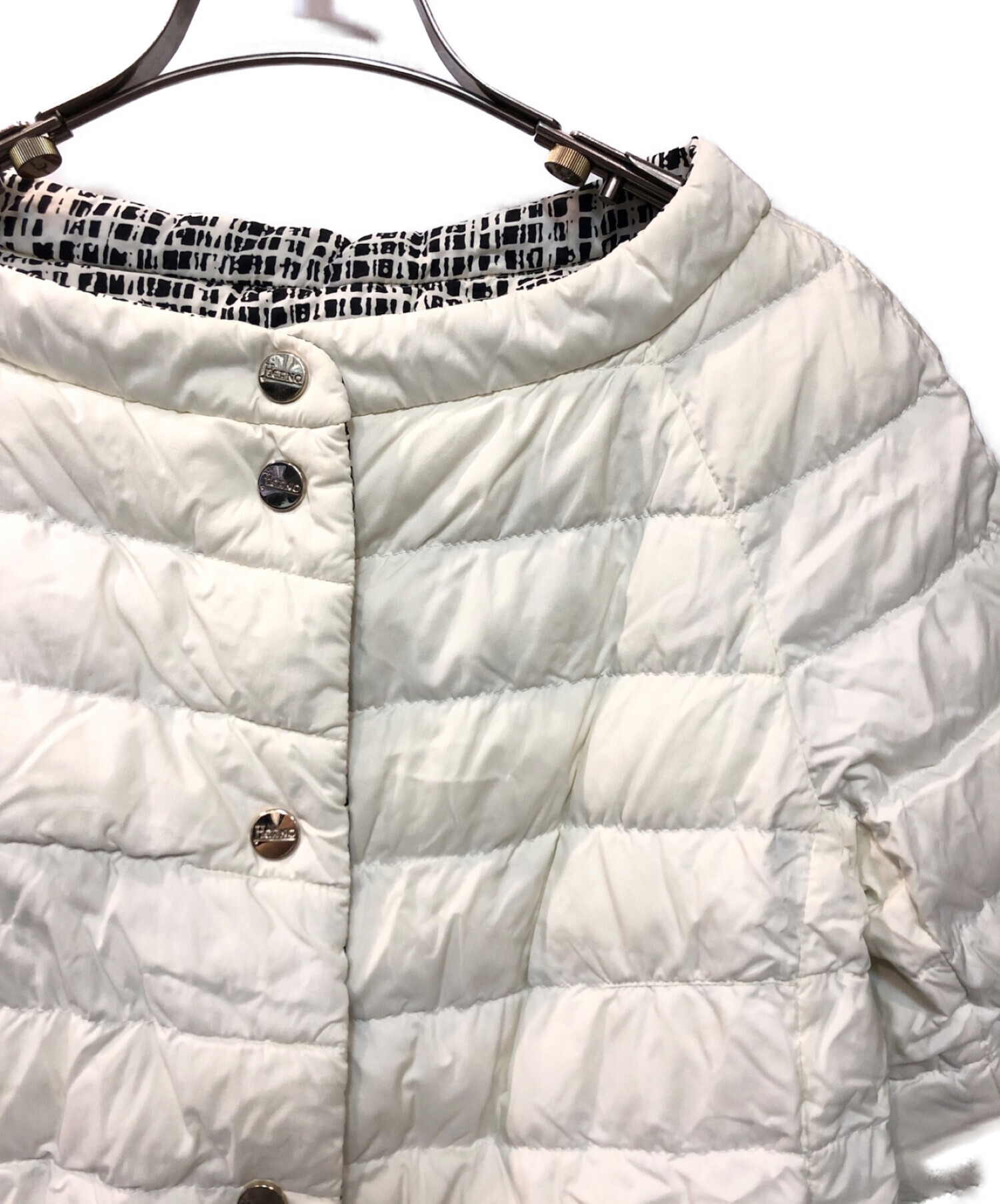 • HERNO(ヘルノ)HERNO (ヘルノ) リバーシブルダウンジャケット ホワイト×ブラック サイズ:42の古着・服飾アイテム 襟周りヨゴレ