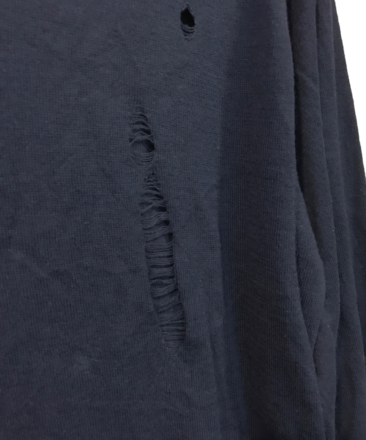 ダメージ加工クルーネックニット
