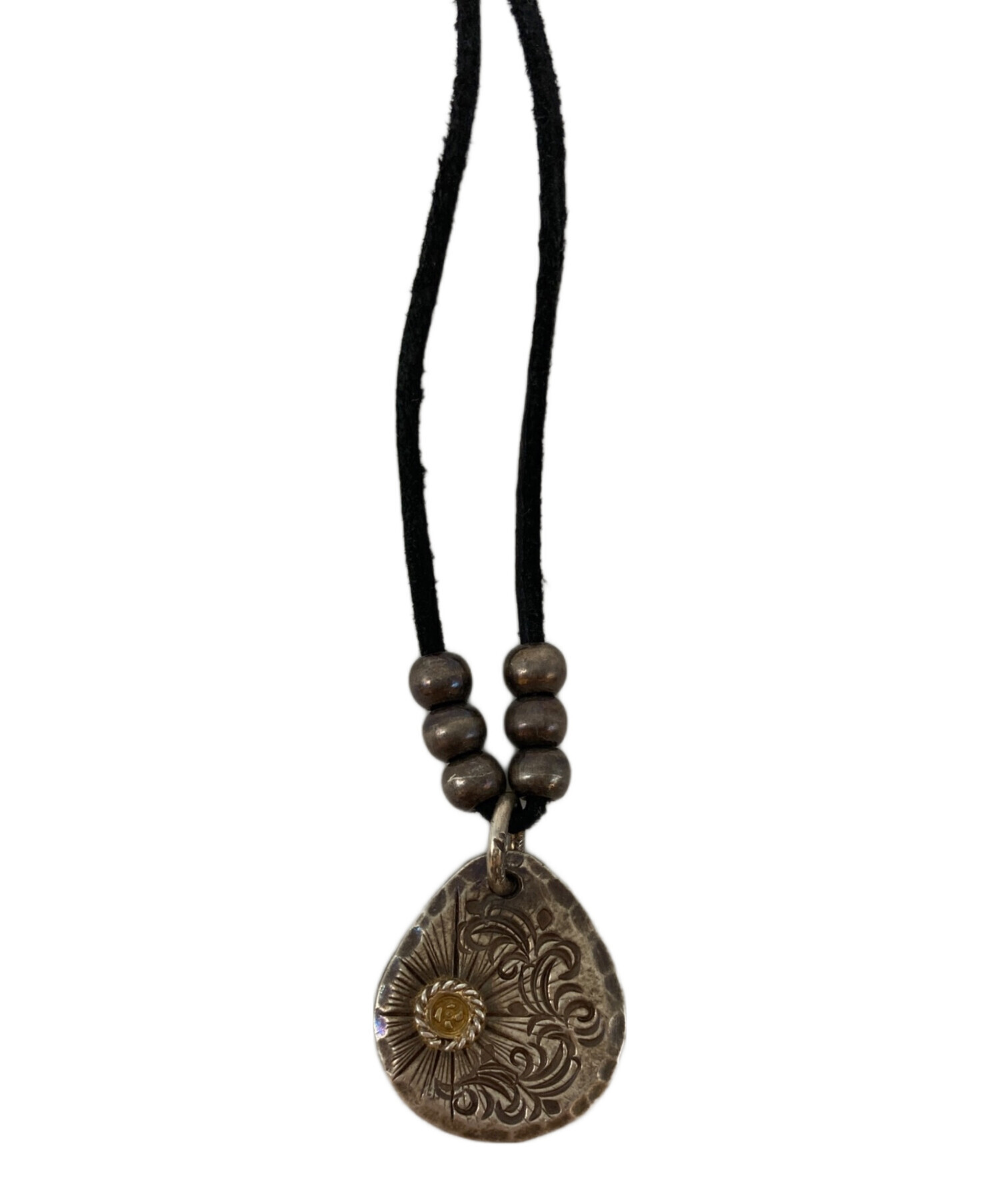 銀縄K18メタル唐草放射タタキペンダントトップネックレス