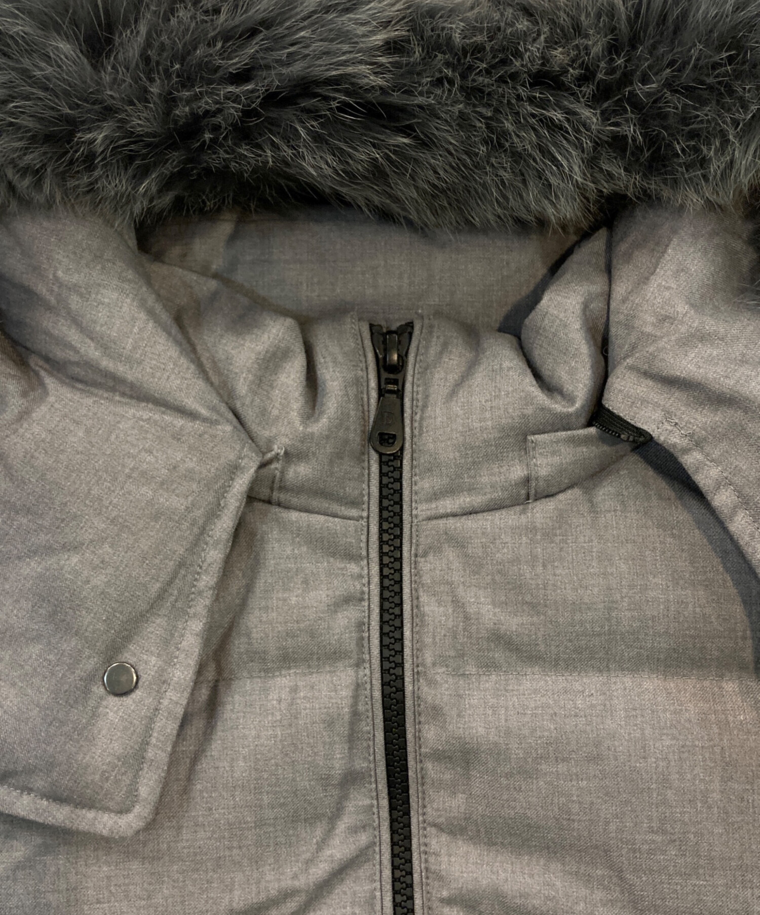 | 素材 | 表地: ポリエステル 65% レーヨン 35% ファー: ブルーフォックス 裏地: ポリエステル 100% 中綿: ダウン 90% フェザー 10% |