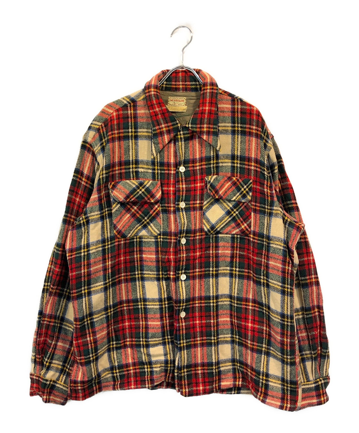 • McGREGOR(マクレガー)McGREGOR (マクレガー) 50'sウールオープンカラーシャツ レッド×グリーン サイズ:Lの古着・服飾アイテム ホツレ有