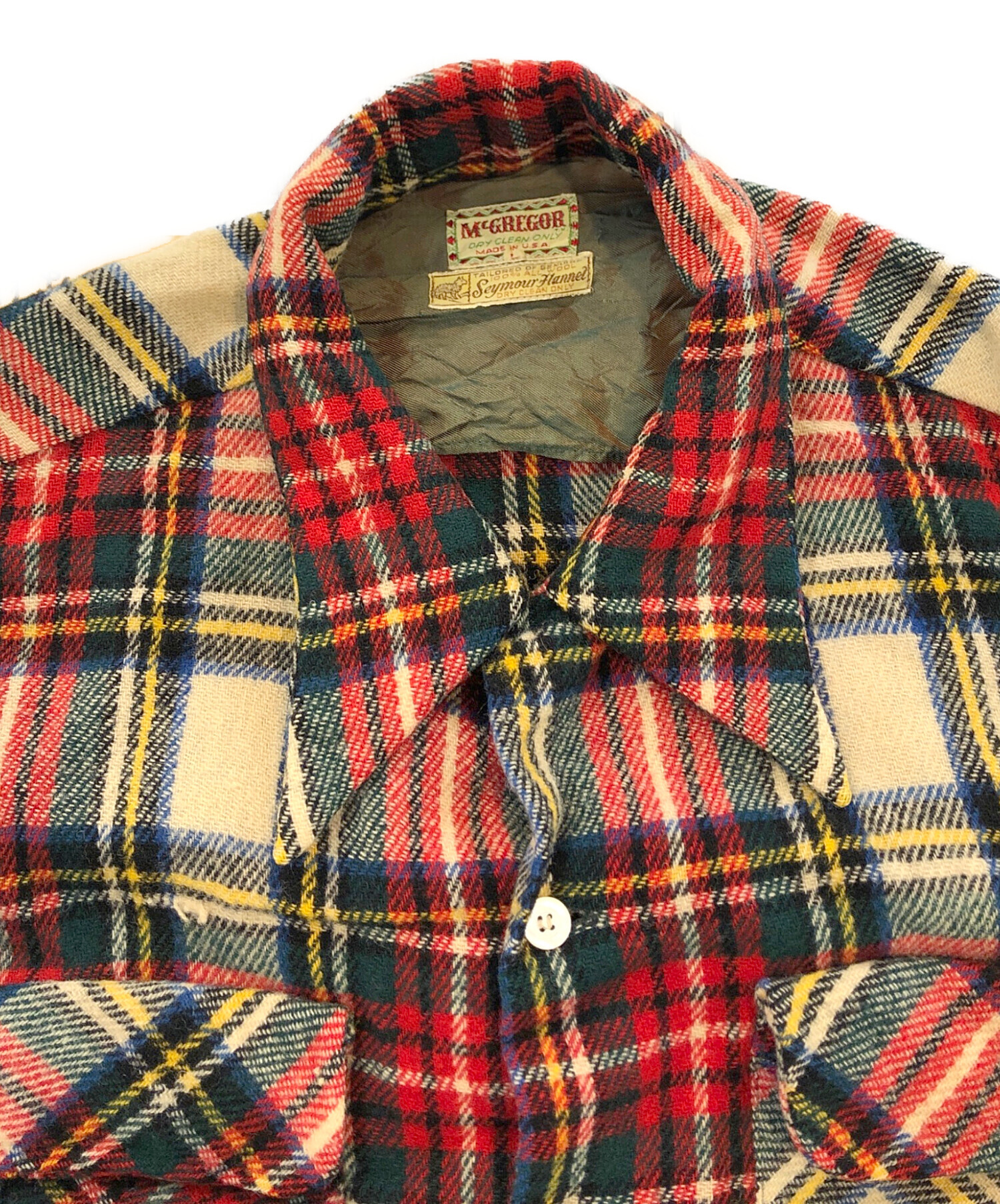 • McGREGOR(マクレガー)McGREGOR (マクレガー) 50'sウールオープンカラーシャツ レッド×グリーン サイズ:Lの古着・服飾アイテム 破れ有