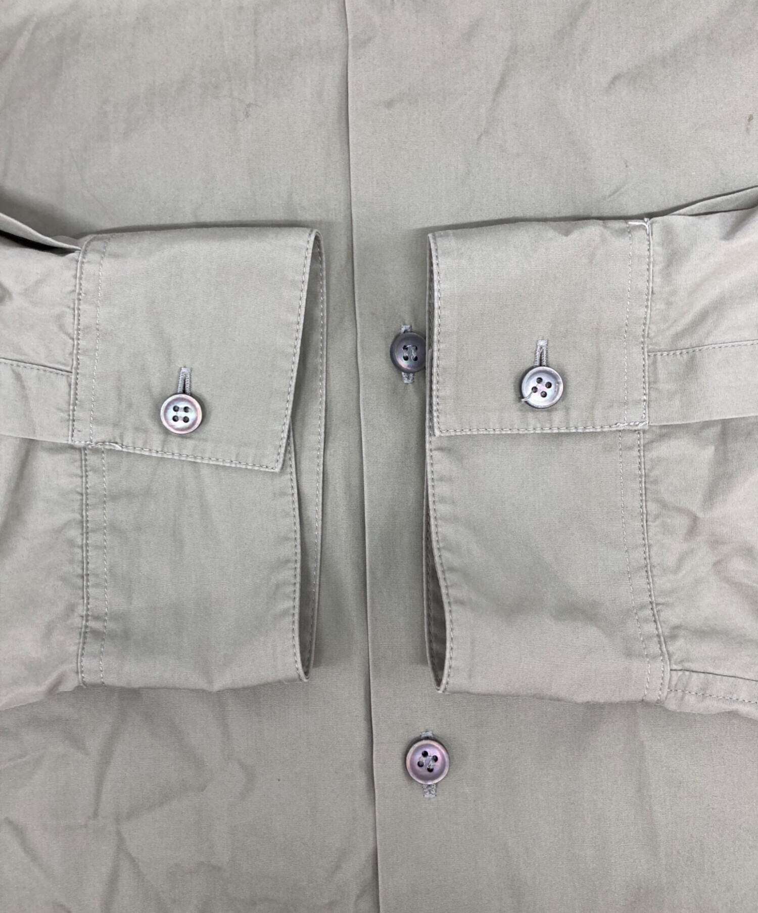 目立つシミや汚れ、におい等がある場合は商品画像や説明文にて極力表記させていただいておりますが、中古品という商品の特性上、全ての瑕疵や不備、洋服直し箇所を撮影・記載をすることは難しくなっております。また、ほとんどのアイテムは店頭と併売しておりますため、出品掲載時からコンディションが変動している場合もございます。あらかじめご了承くださいませ。