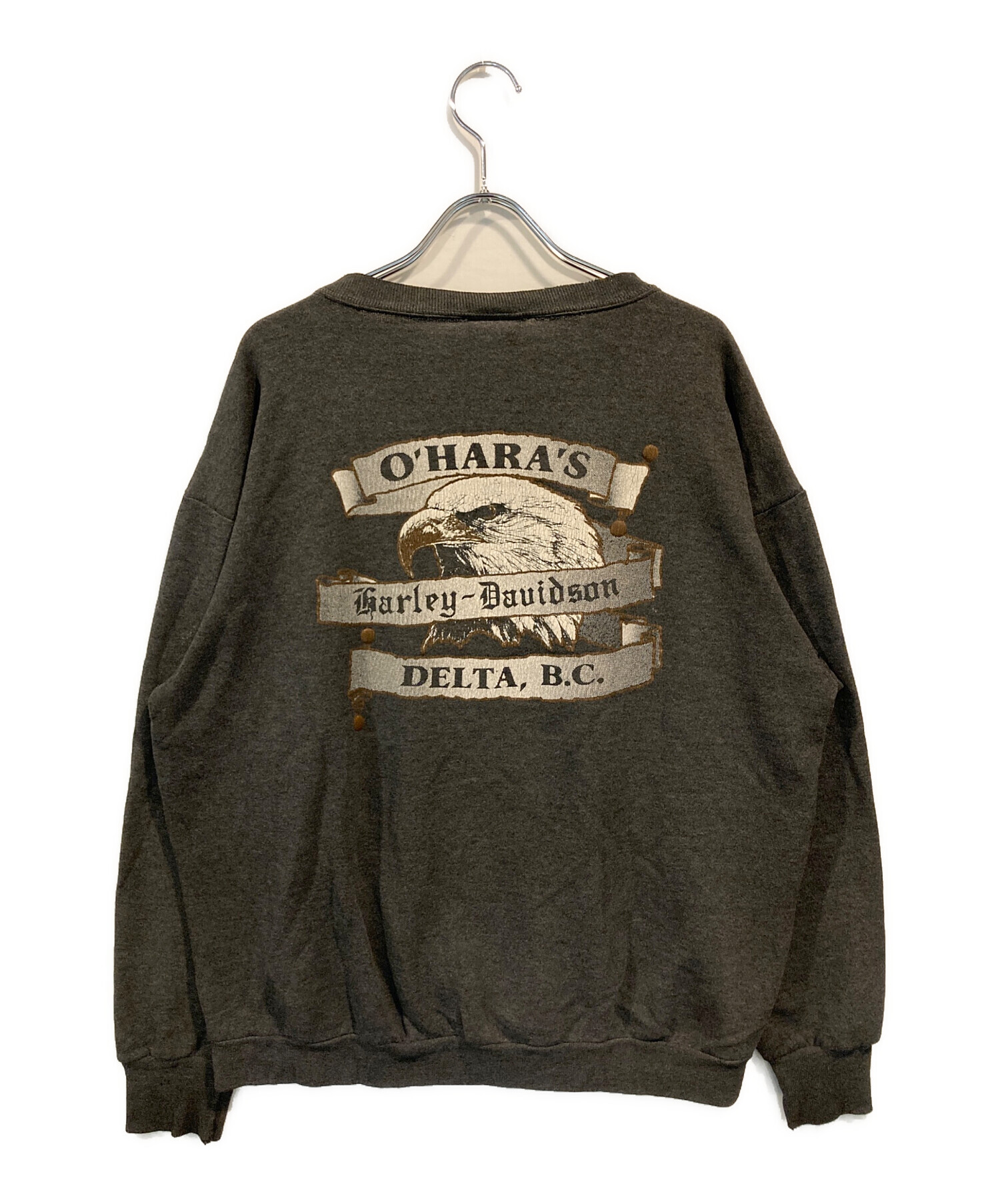 • HARLEY-DAVIDSON(ハーレーダビッドソン)HARLEY-DAVIDSON (ハーレーダビッドソン) 90sローズプリントスウェット グレー サイズ:XLの古着・服飾アイテム 襟・袖口ダメージ有
