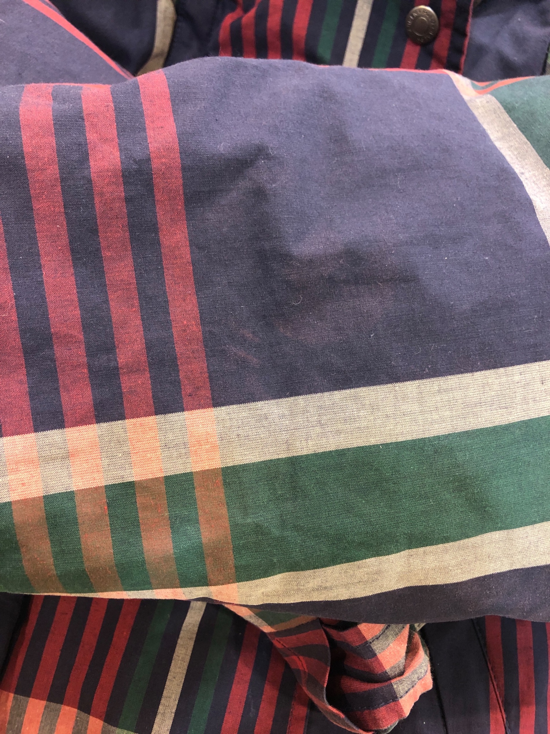 目立つシミや汚れ、におい等がある場合は商品画像や説明文にて極力表記させていただいておりますが、中古品という商品の特性上、全ての瑕疵や不備、洋服直し箇所を撮影・記載をすることは難しくなっております。また、ほとんどのアイテムは店頭と併売しておりますため、出品掲載時からコンディションが変動している場合もございます。あらかじめご了承くださいませ。