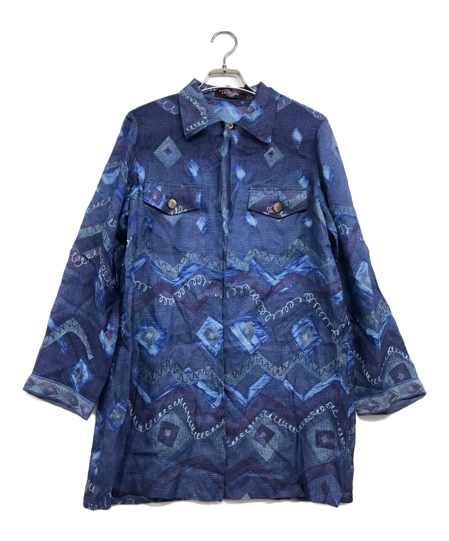 総柄リネンシルクトッパーシャツ