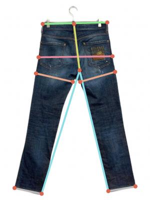当サイトでは商品の表記サイズの他に、出品商品を採寸しサイズを記載しております。また、実際のアイテム画像を使用した計測とイラストを使用した計測の2パターンがございます。