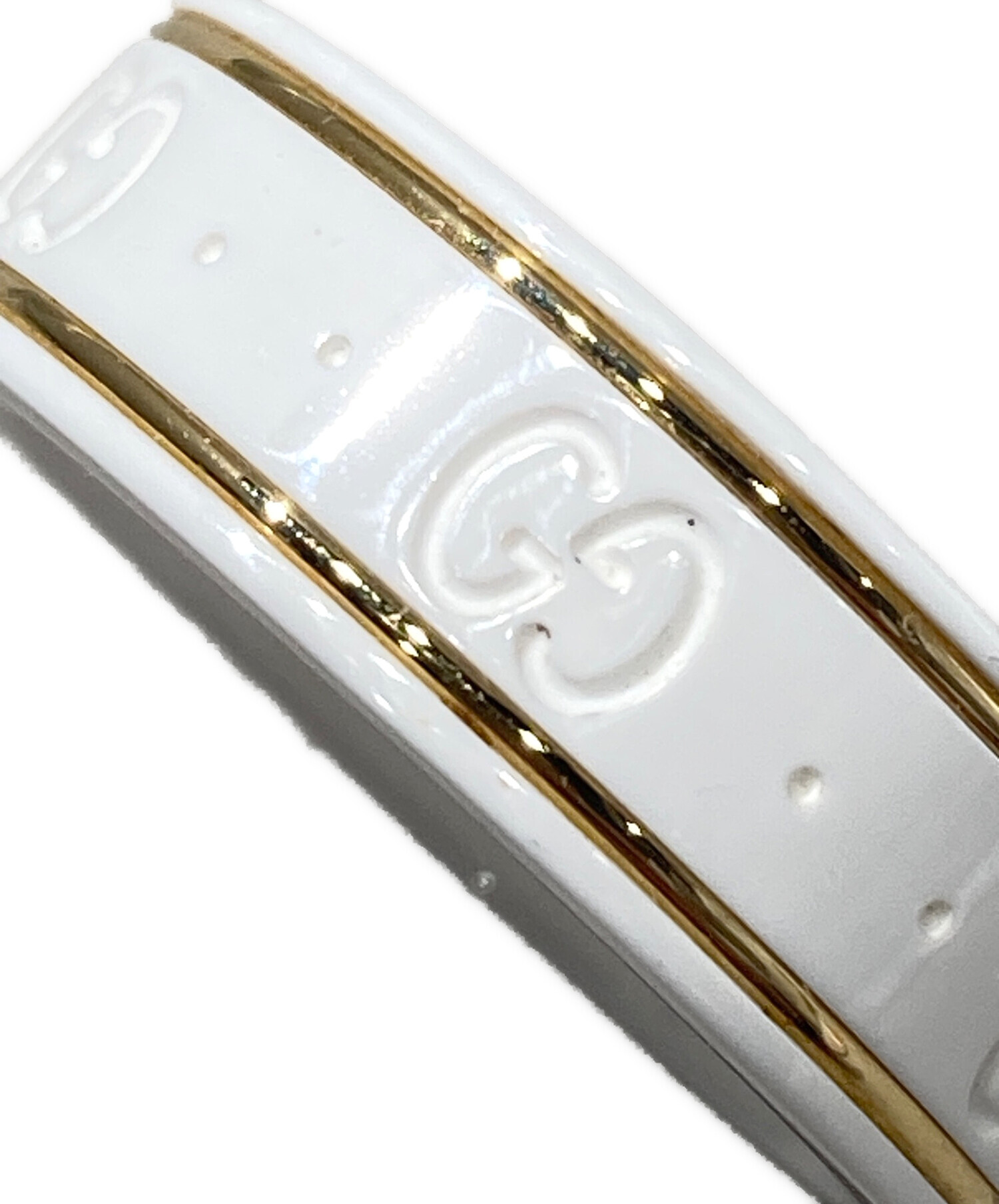 | スタッフコメント | リング全面には、グッチの頭文字であるアイコニックな「GG」パターンが緻密に刻印されています。このタイムレスなデザインは、ブランドの歴史とクラフツマンシップを体現しており、手元に洗練された華やかさを添えます。丁寧な作りと耐久性により、長くご愛用いただけるジュエリーです。 |