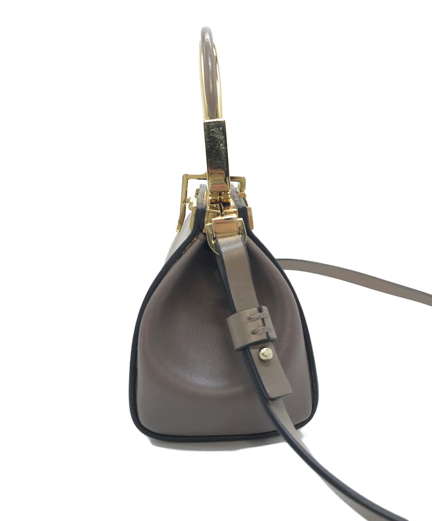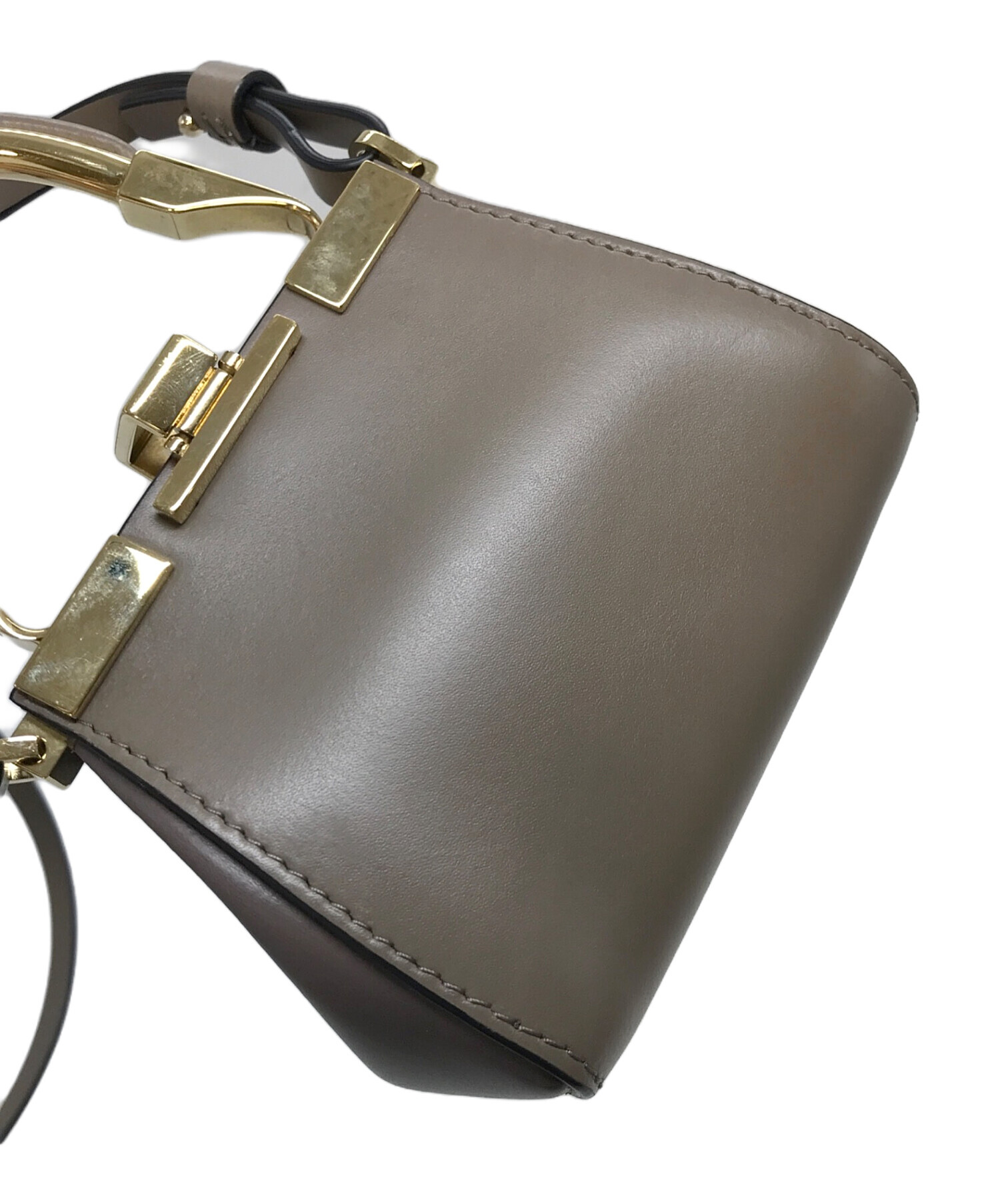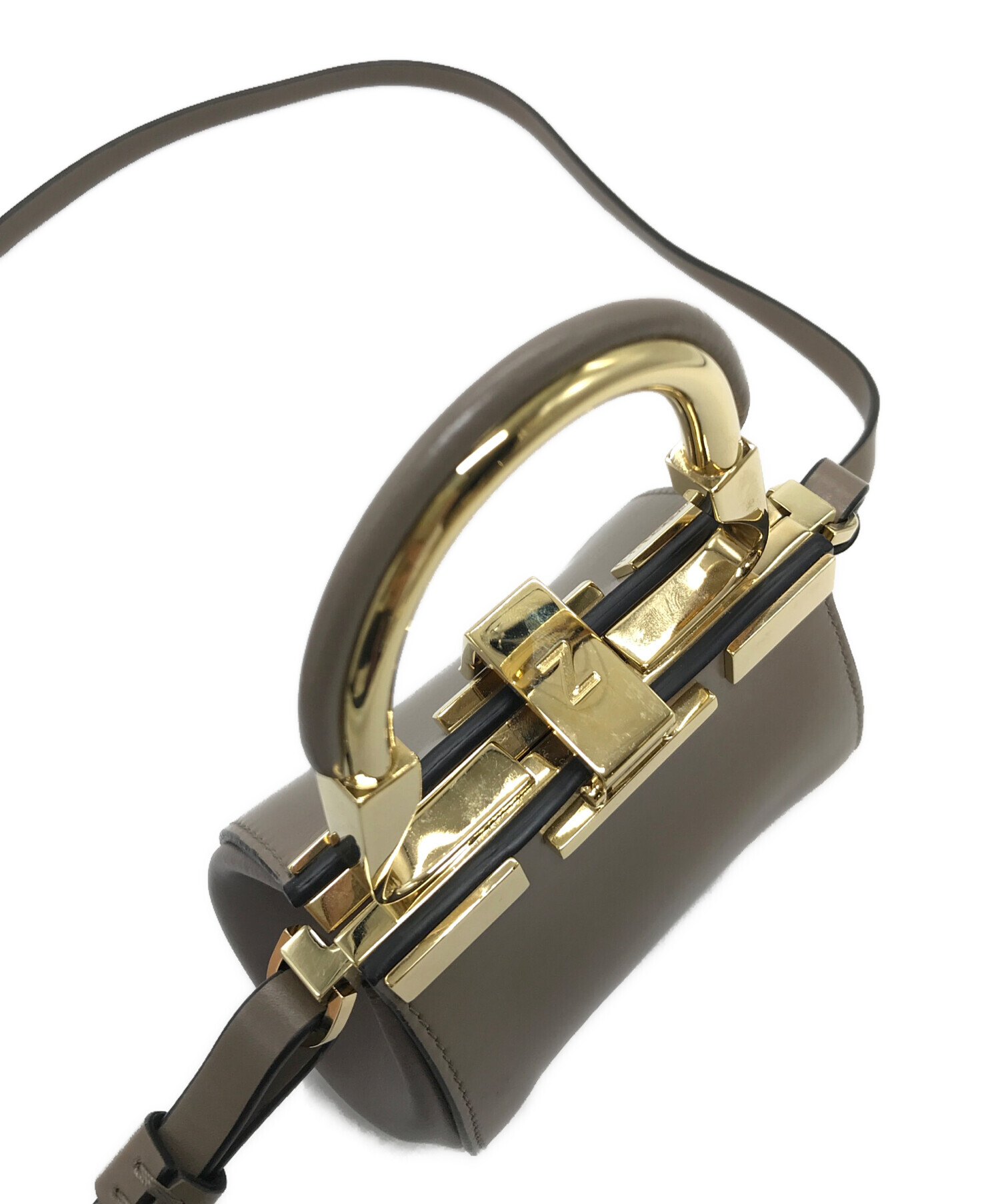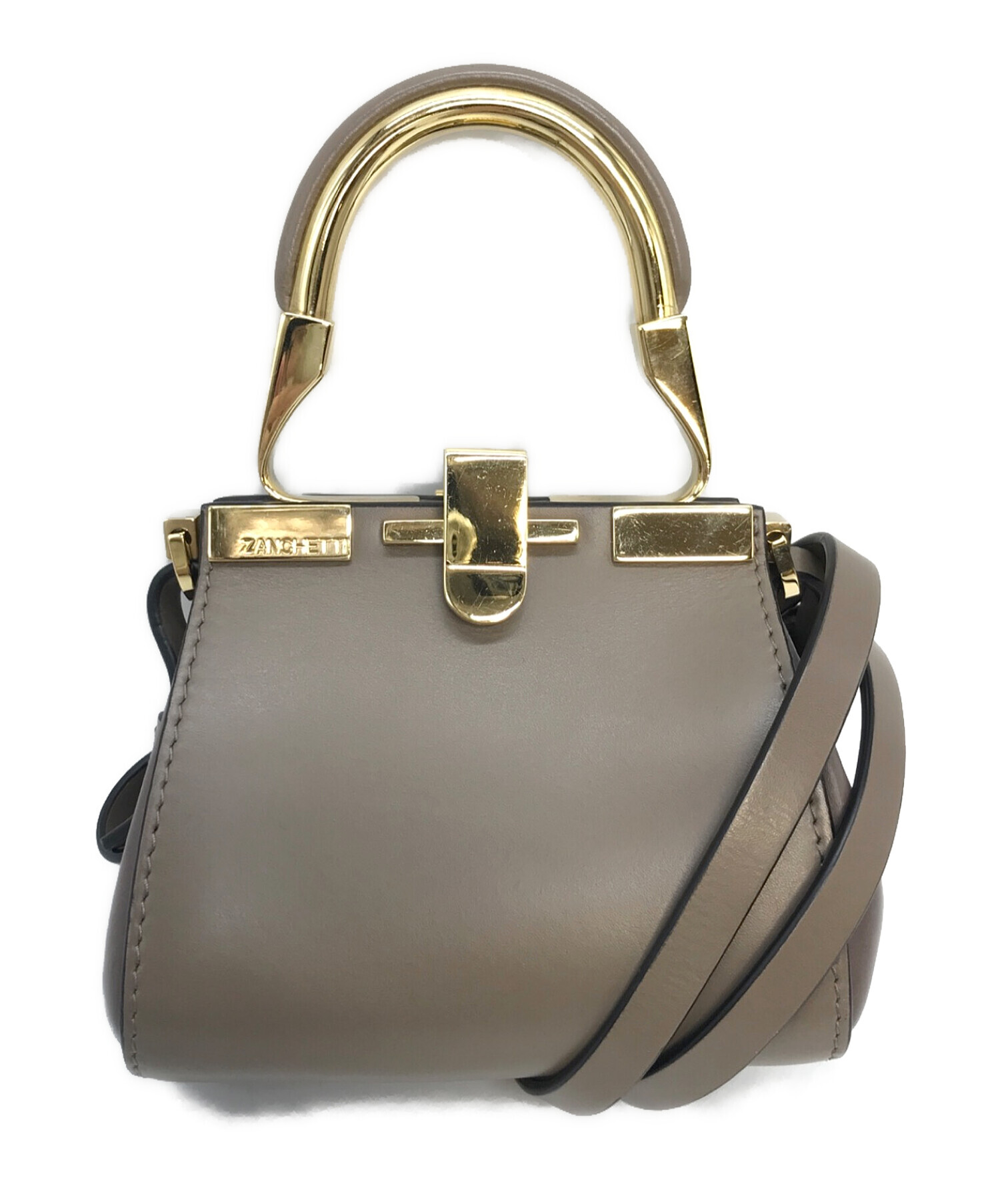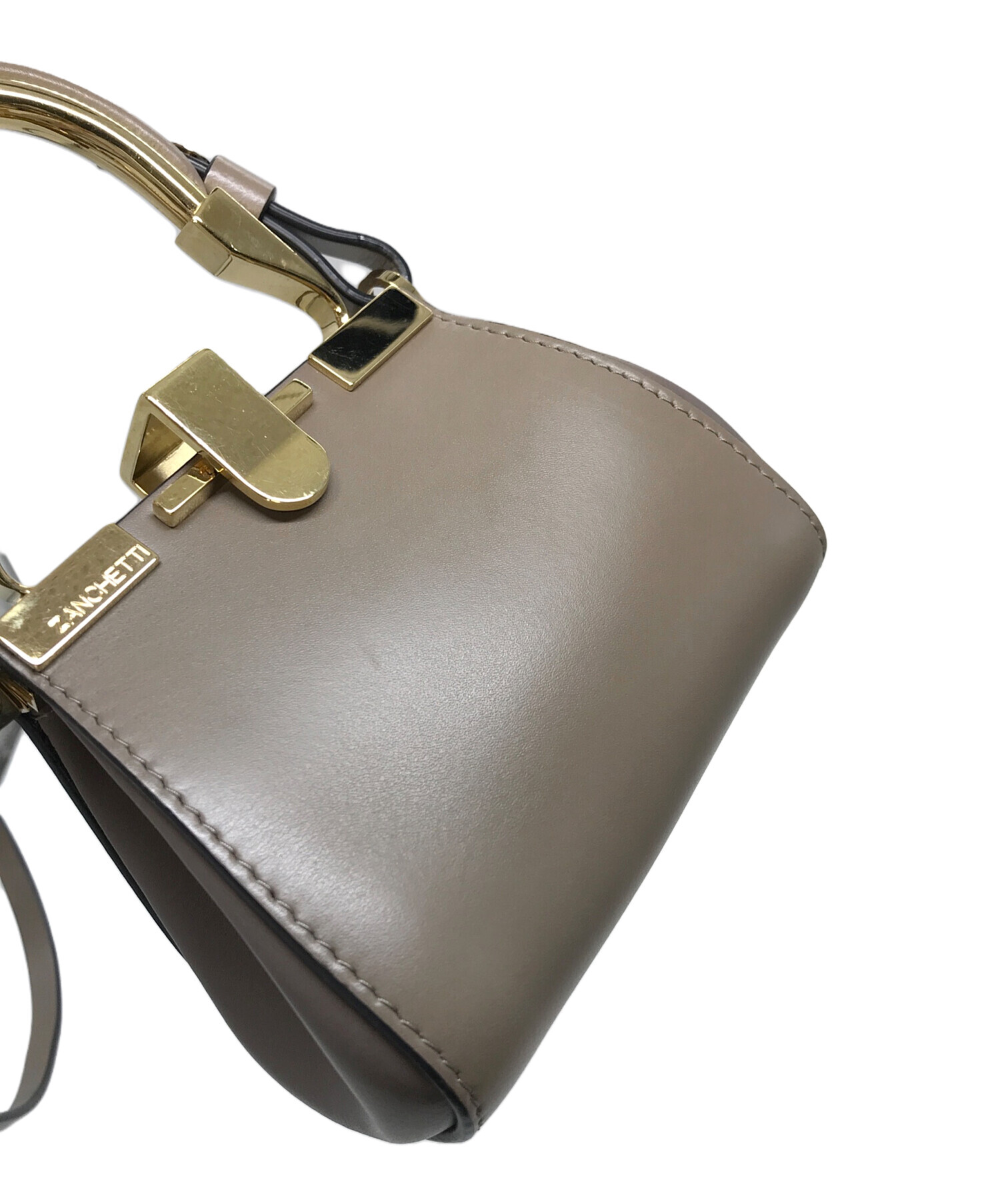 • ZANCHETTI(ザンケッティー)ZANCHETTI (ザンケッティー) AMLETO mini  ショルダーバッグ ブラウン×グレージュ サイズ:実寸参照の古着・服飾アイテム ハンドル小ヨゴレや金具スレキズあり