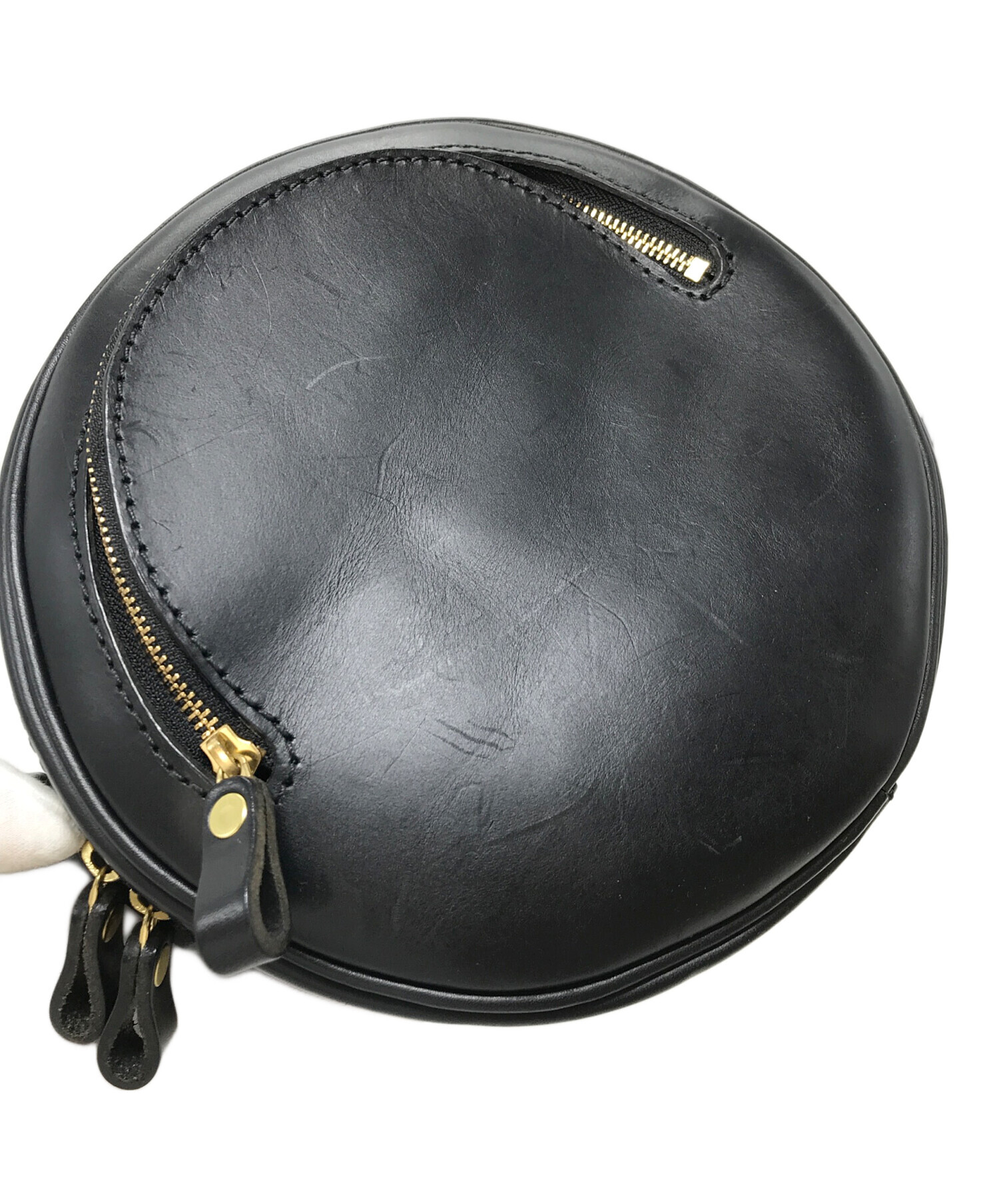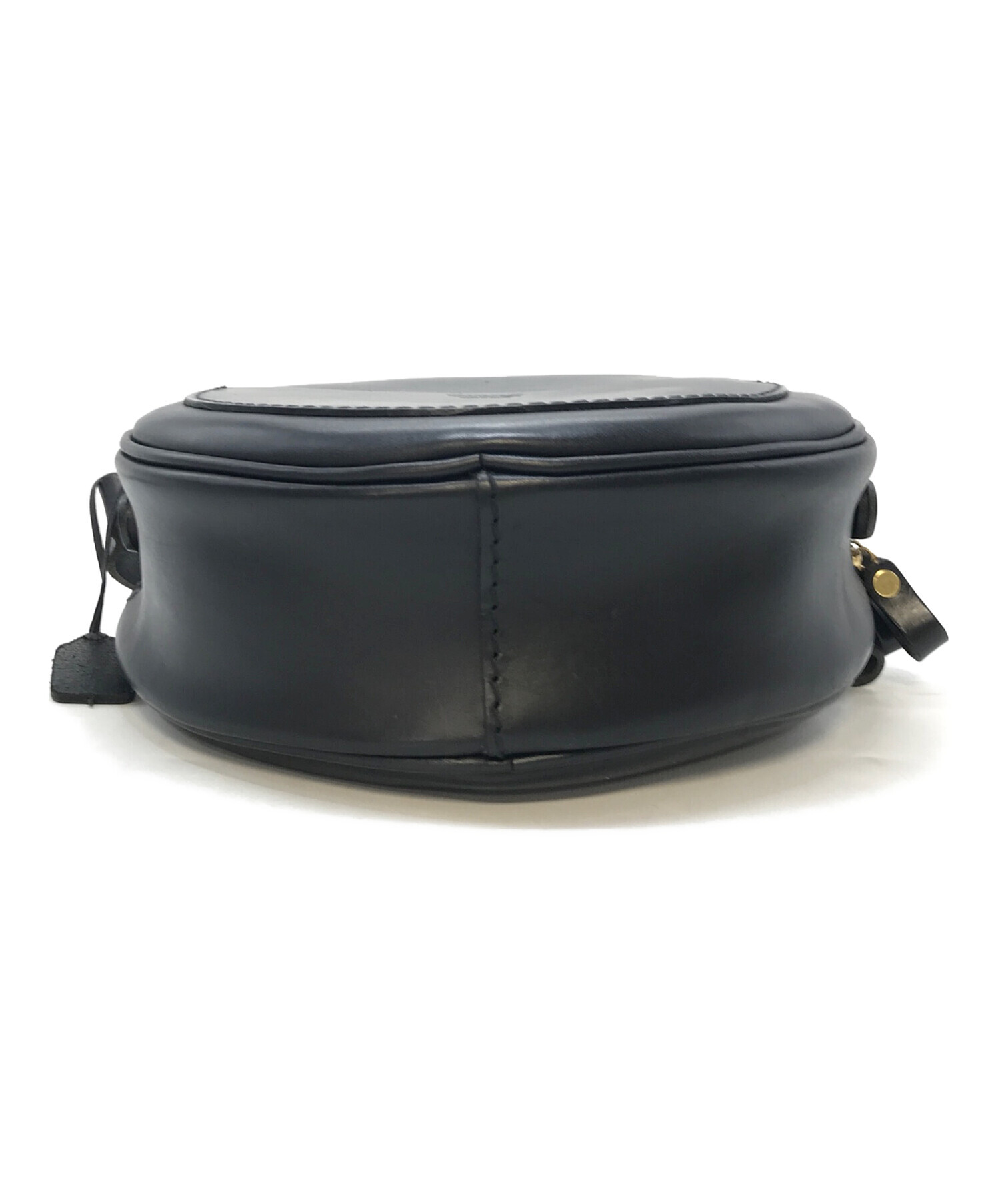 • Herz(ヘルツ)Herz (ヘルツ) レザーショルダーバッグ セリニバッグ ラウンドバッグ ブラック サイズ:実寸参照の古着・服飾アイテム サイドから底にかけてスレキズあり