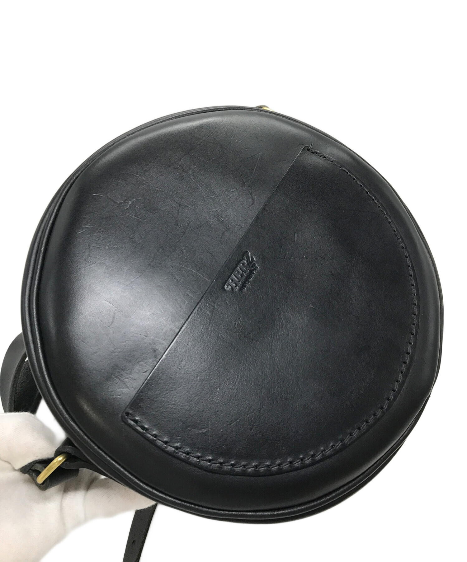 • Herz(ヘルツ)Herz (ヘルツ) レザーショルダーバッグ セリニバッグ ラウンドバッグ ブラック サイズ:実寸参照の古着・服飾アイテム フロントポケット型崩れあり