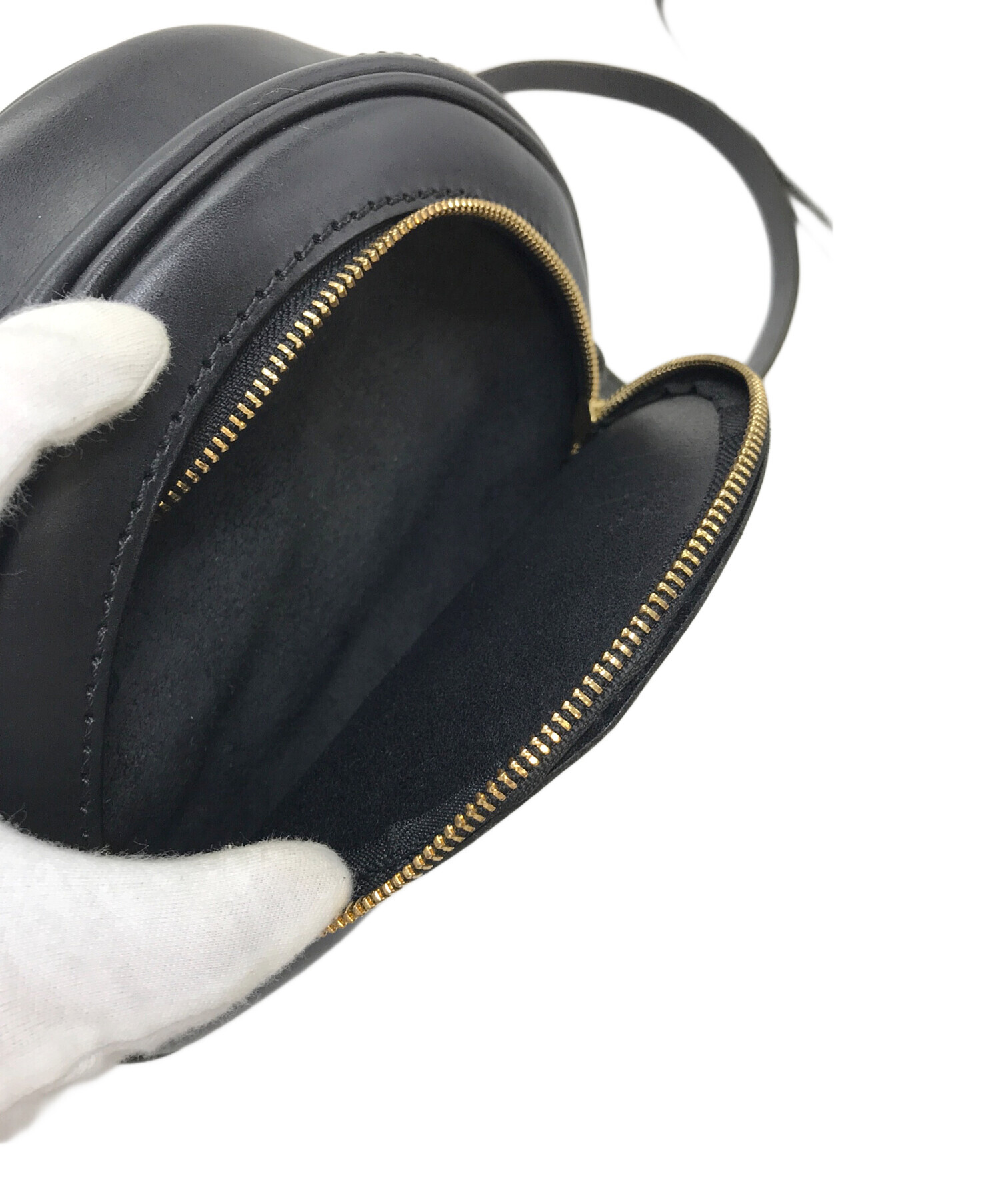 • Herz(ヘルツ)Herz (ヘルツ) レザーショルダーバッグ セリニバッグ ラウンドバッグ ブラック サイズ:実寸参照の古着・服飾アイテム 型崩れあり