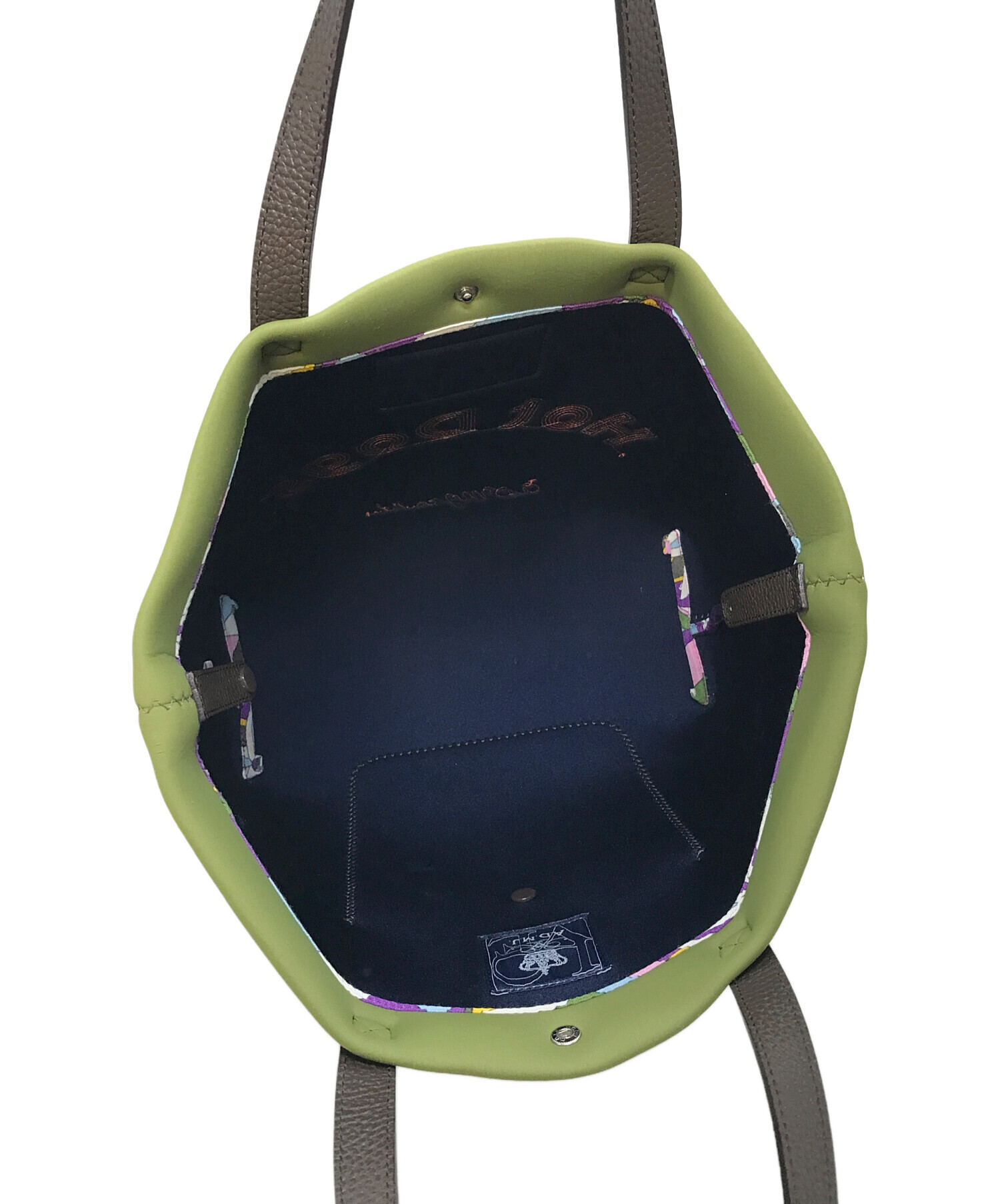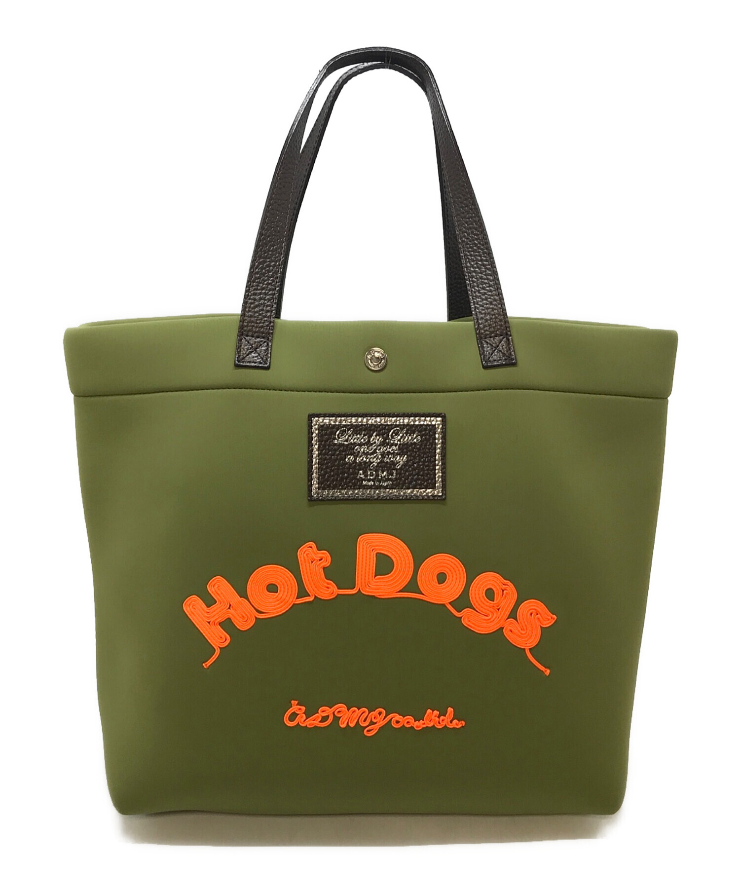 • A.D.M.J.(エーディーエムジェイ)A.D.M.J. (エーディーエムジェイ) マジックライト コード刺しゅう トートバッグ グリーン サイズ:実寸参照の古着・服飾アイテム 角スレあり