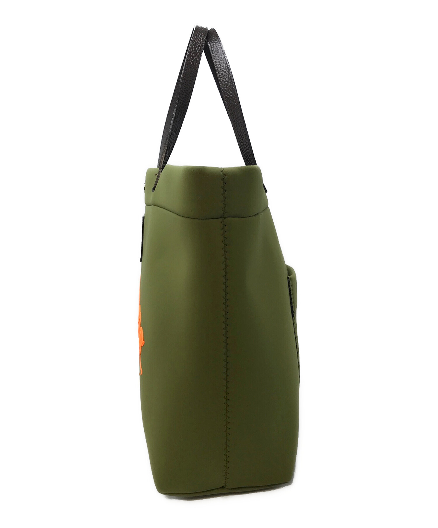 • A.D.M.J.(エーディーエムジェイ)A.D.M.J. (エーディーエムジェイ) マジックライト コード刺しゅう トートバッグ グリーン サイズ:実寸参照の古着・服飾アイテム ツレあり