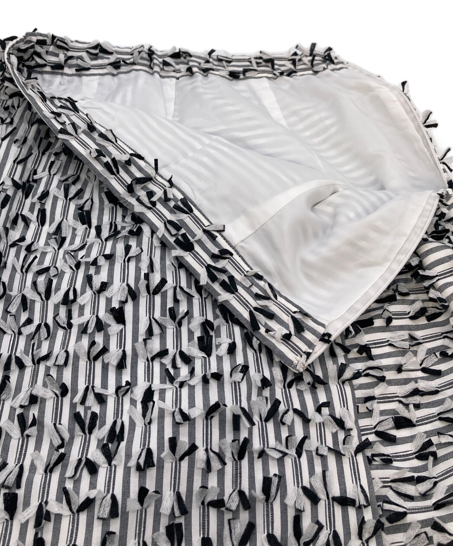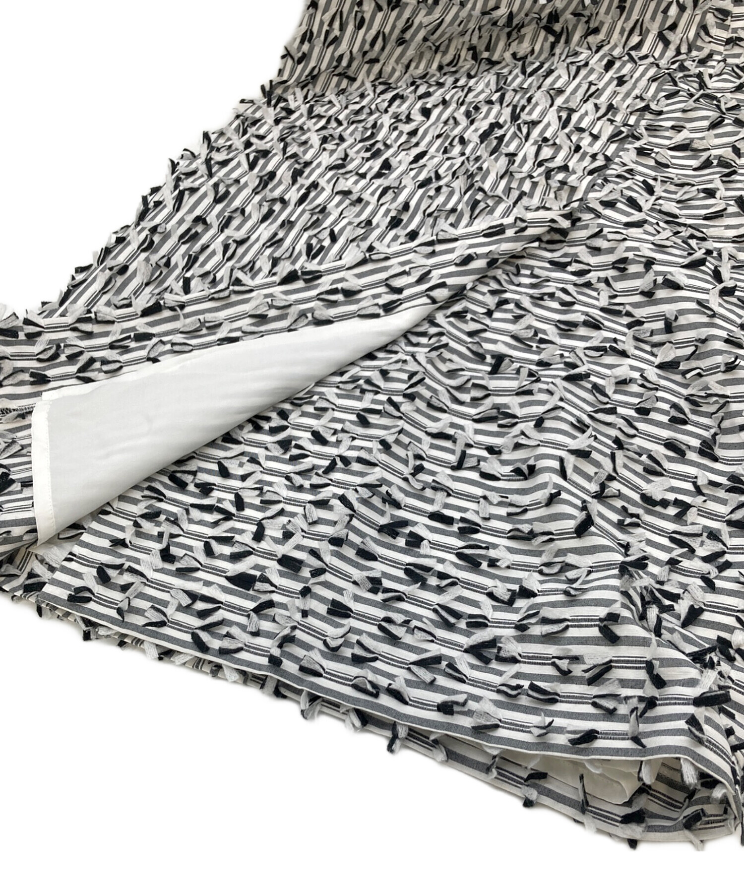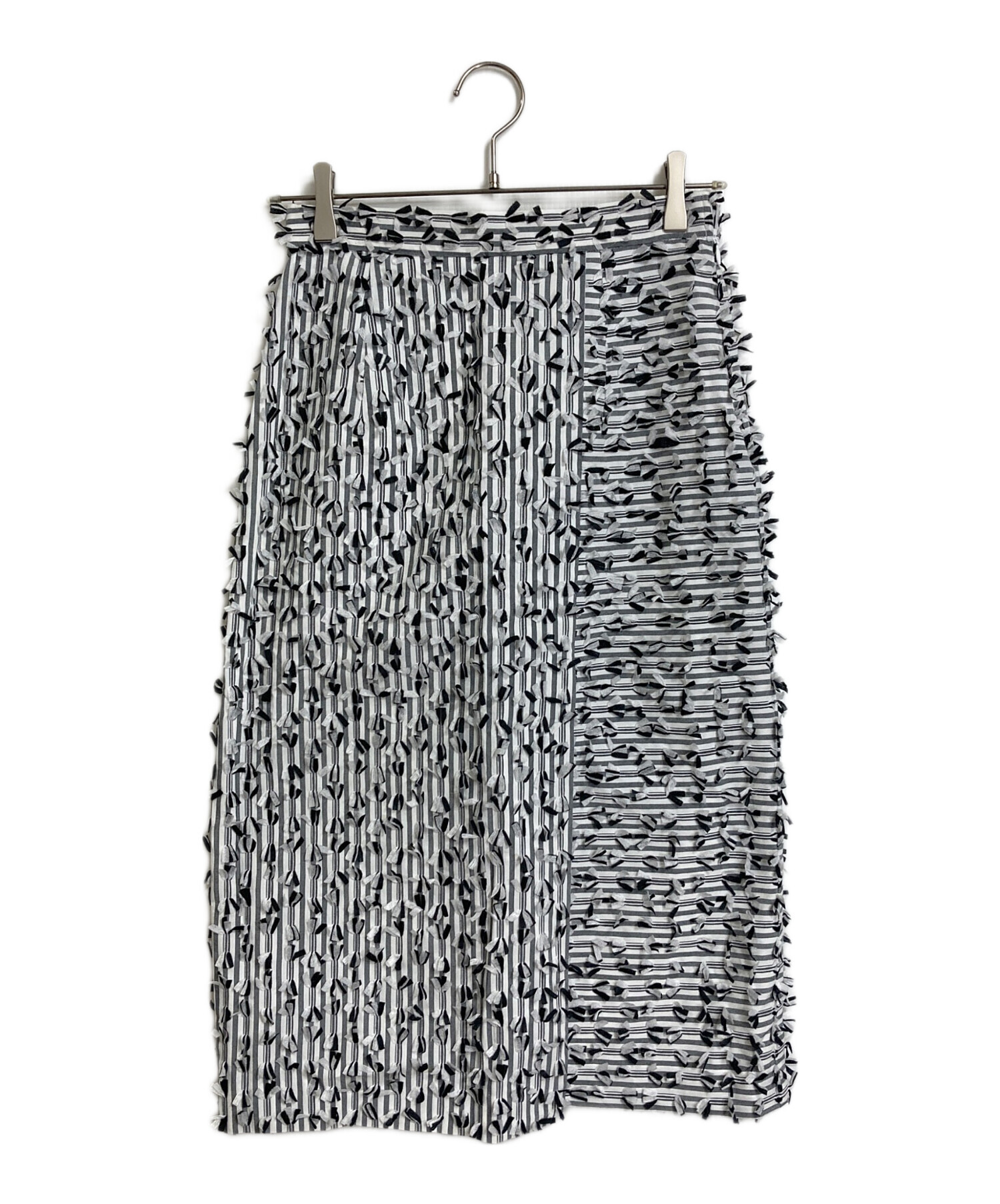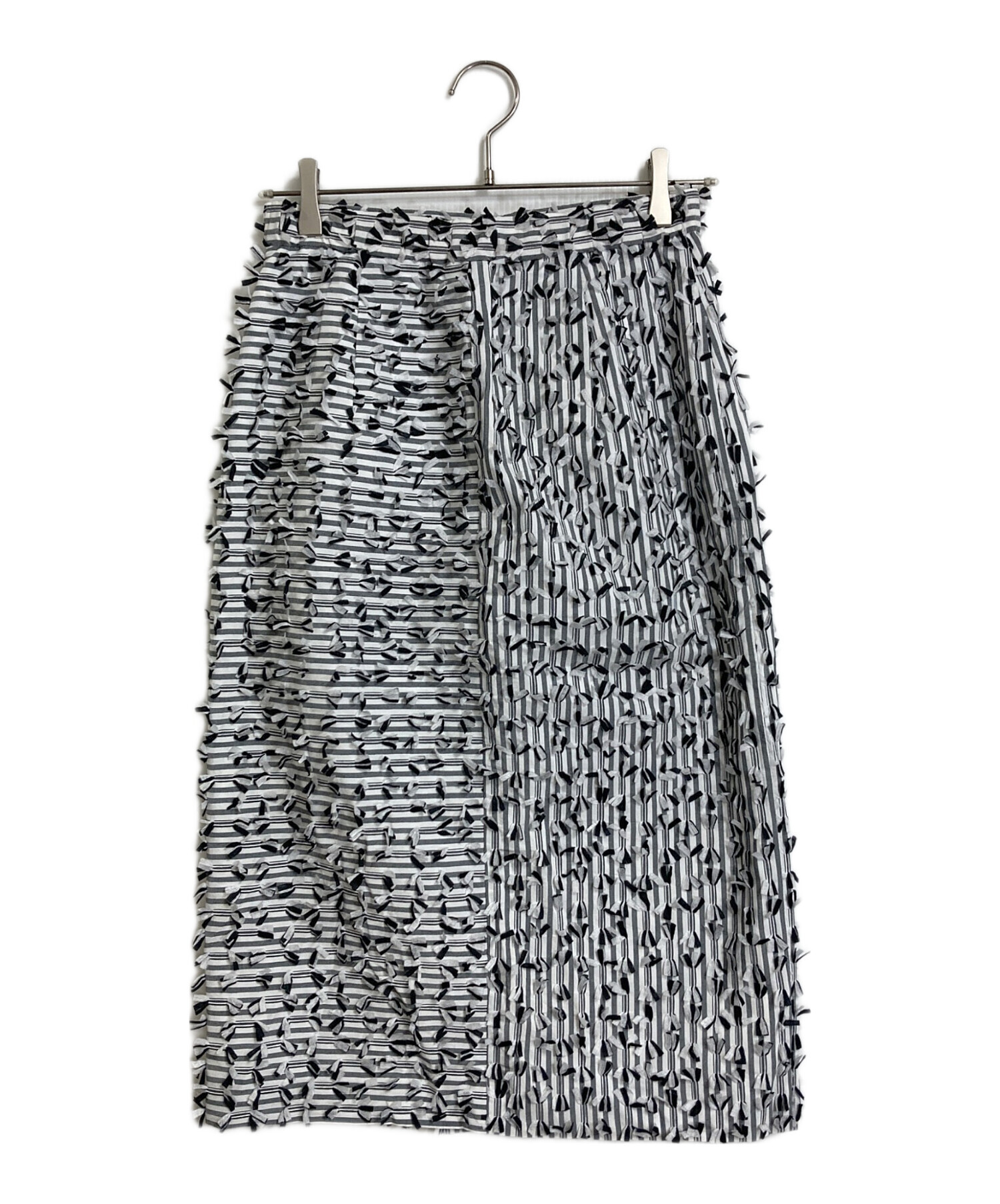 • GRACE CONTINENTAL((グレースコンチネンタル)GRACE CONTINENTAL (グレースコンチネンタル) ボーダーカットジャガードスカート デザインスカート ホワイト×ブラック サイズ:Mの古着・服飾アイテム 前スリットあり