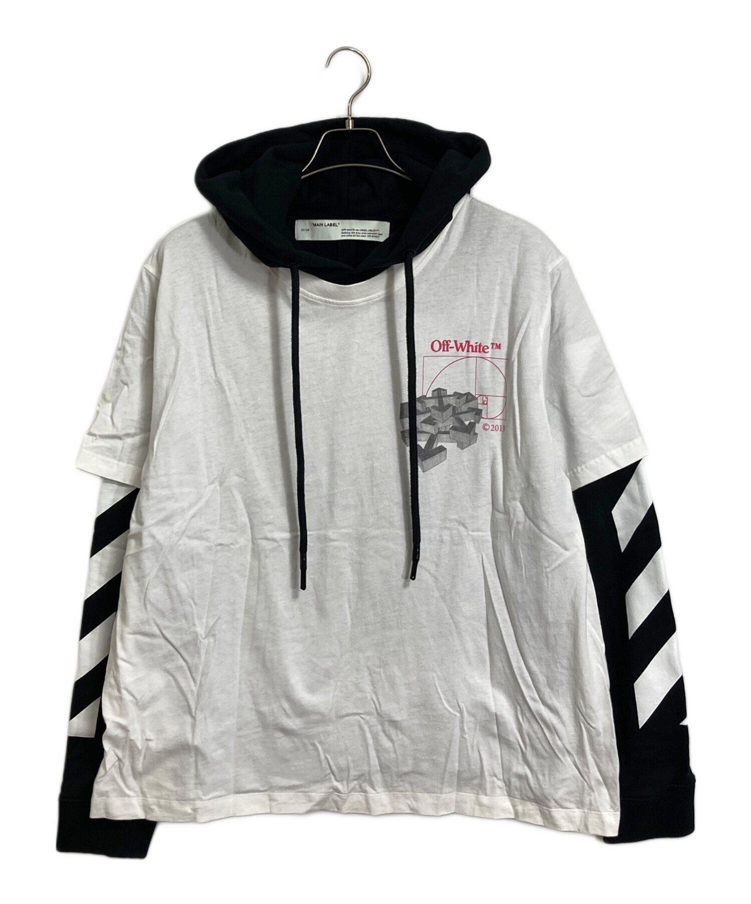 • OFFWHITE(オフホワイト)OFFWHITE (オフホワイト) レイヤードパーカー ブラック×ホワイト サイズ:Mの古着・服飾アイテム 袖裏小ヨゴレあり