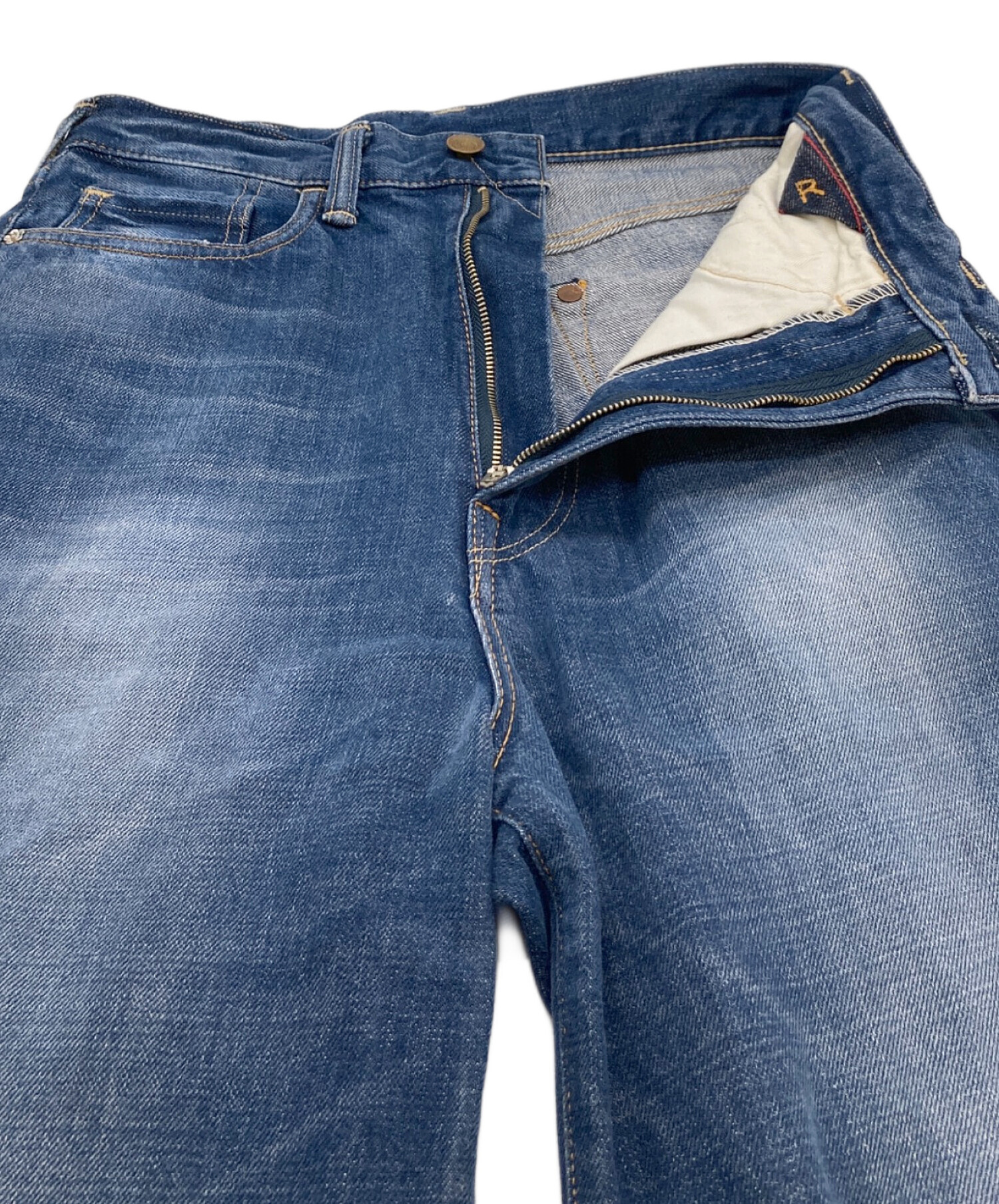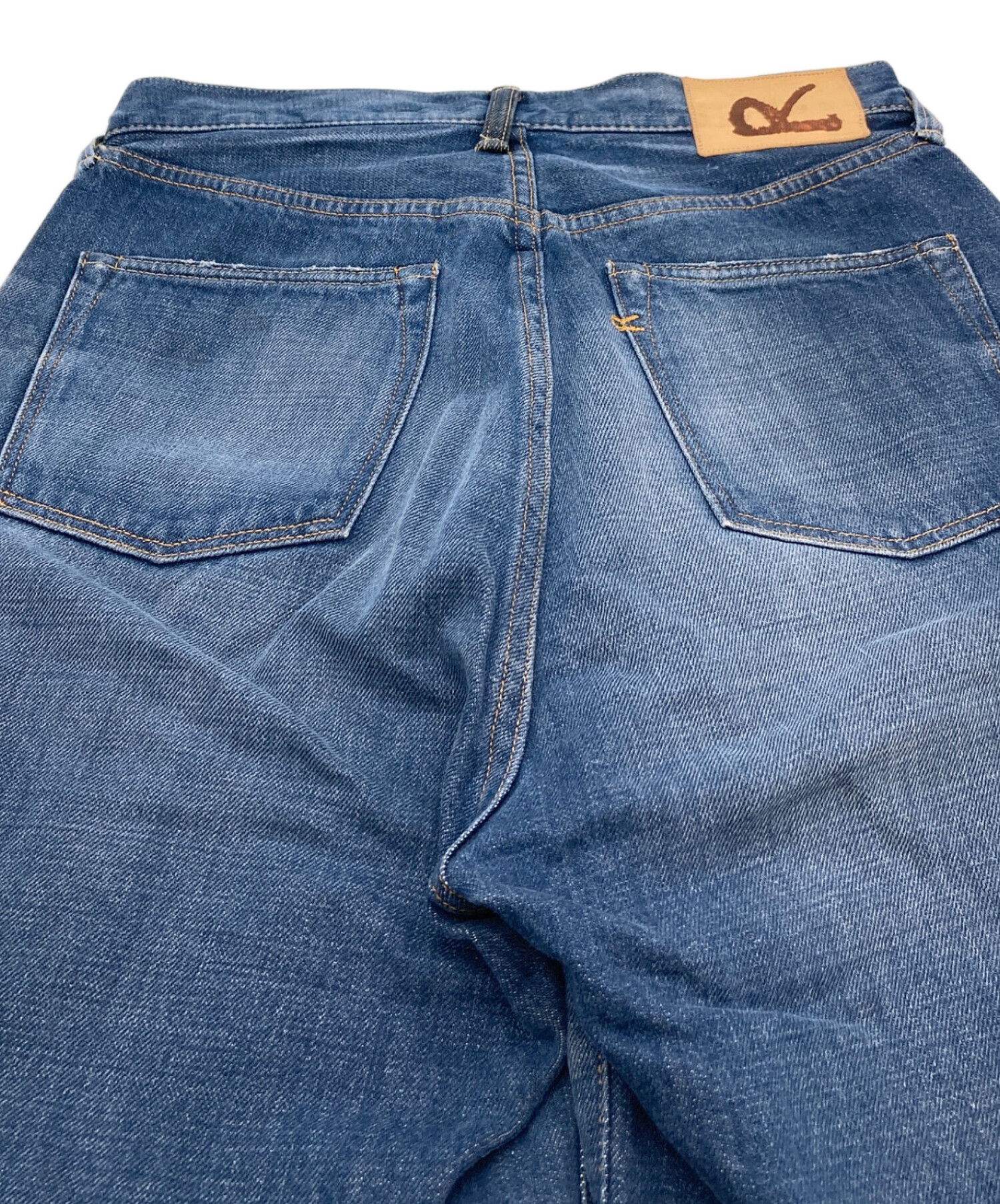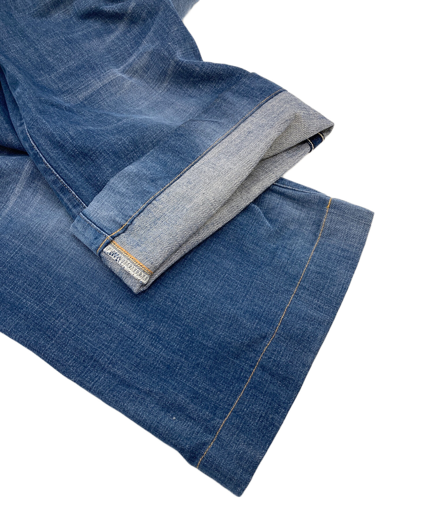 • 45rpm(45アールピーエム)45rpm (45アールピーエム) おこめコバチ比女加工 ワイドデニムパンツ インディゴ サイズ:Sの古着・服飾アイテム 裾裏小スレあり