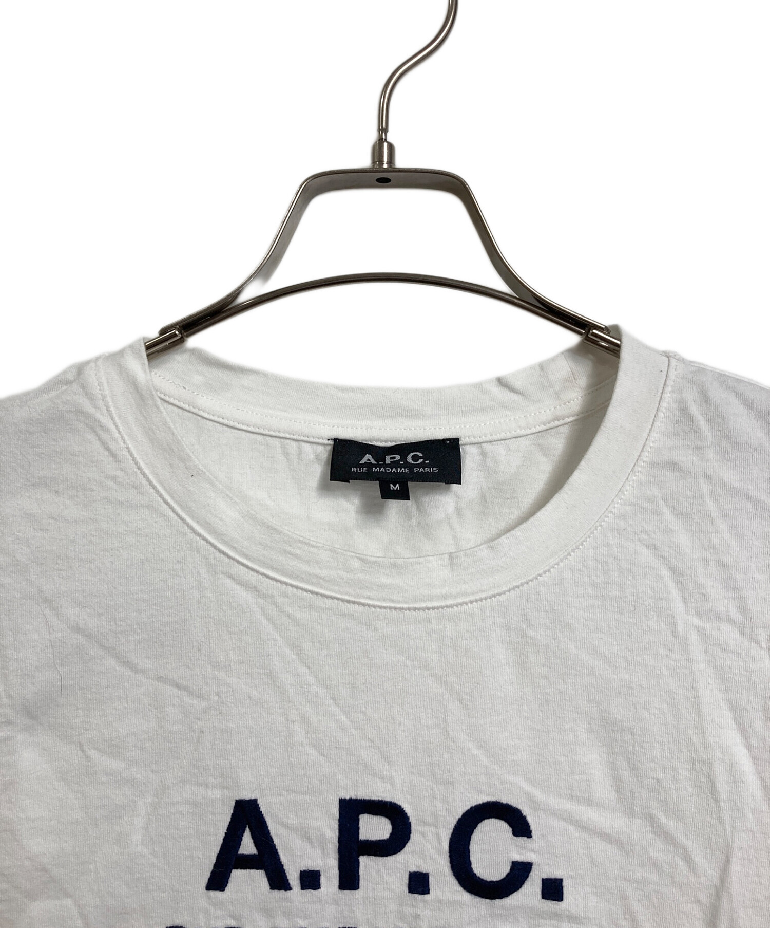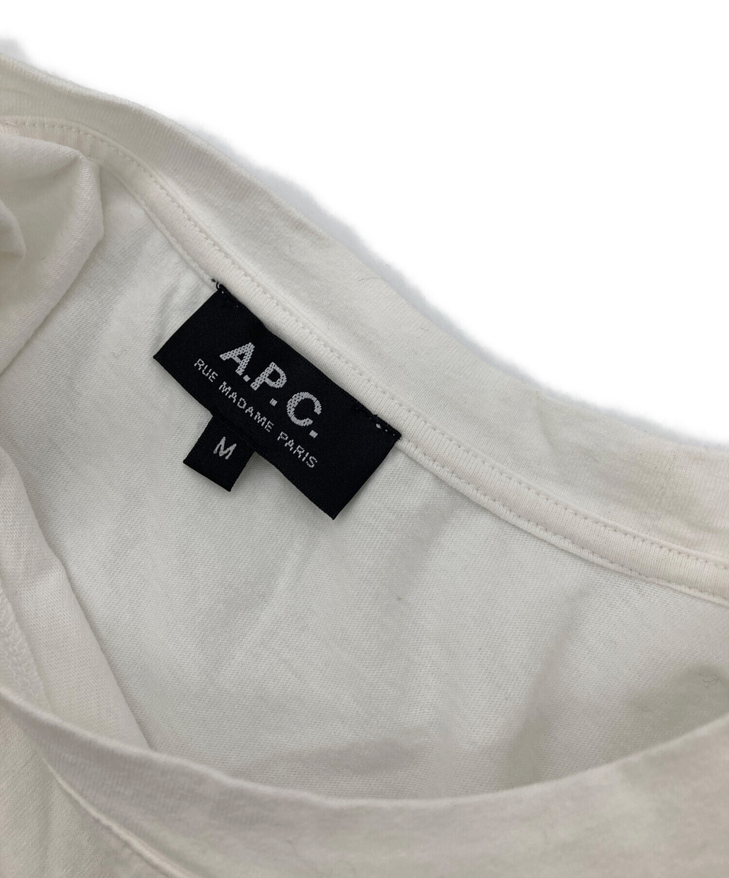 • A.P.C.(アーペーセー)A.P.C. (アーペーセー) T-SHIRT RUE MADAME  半袖カットソー Tシャツ Tee   日本製 ホワイト サイズ:Mの古着・服飾アイテム 襟薄ヨゴレあり