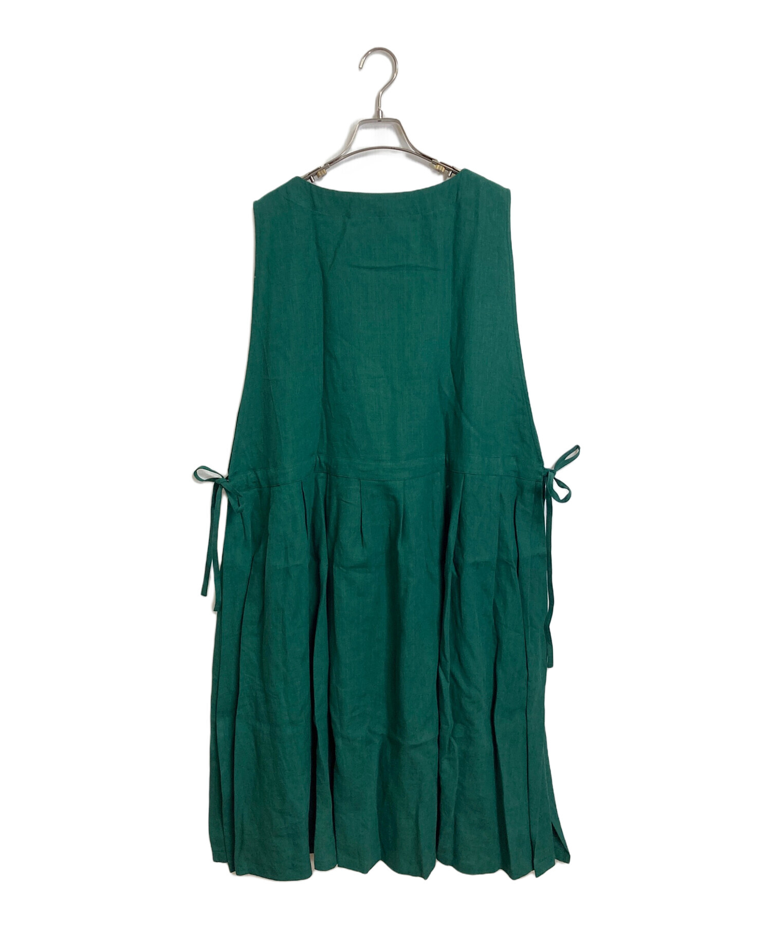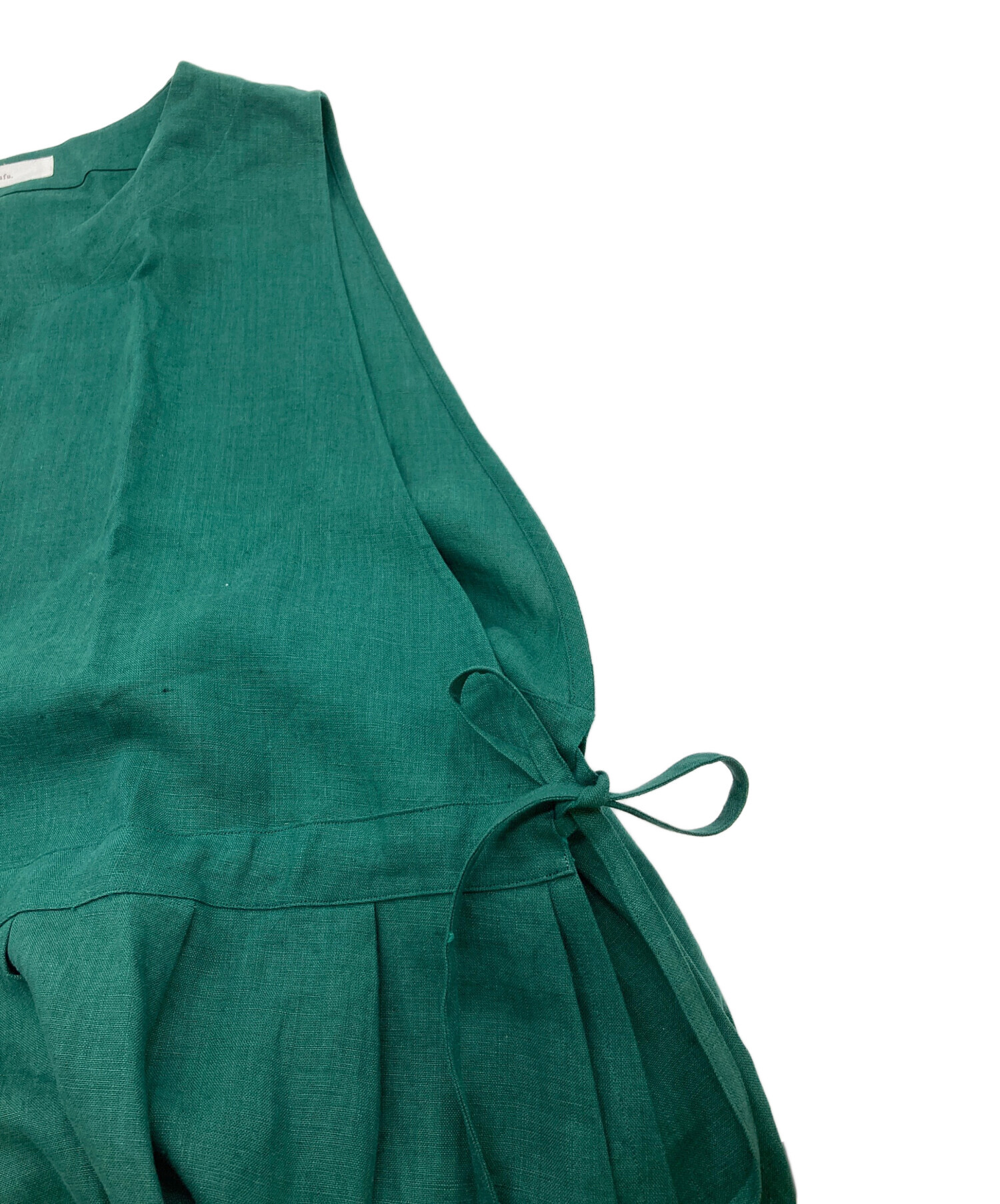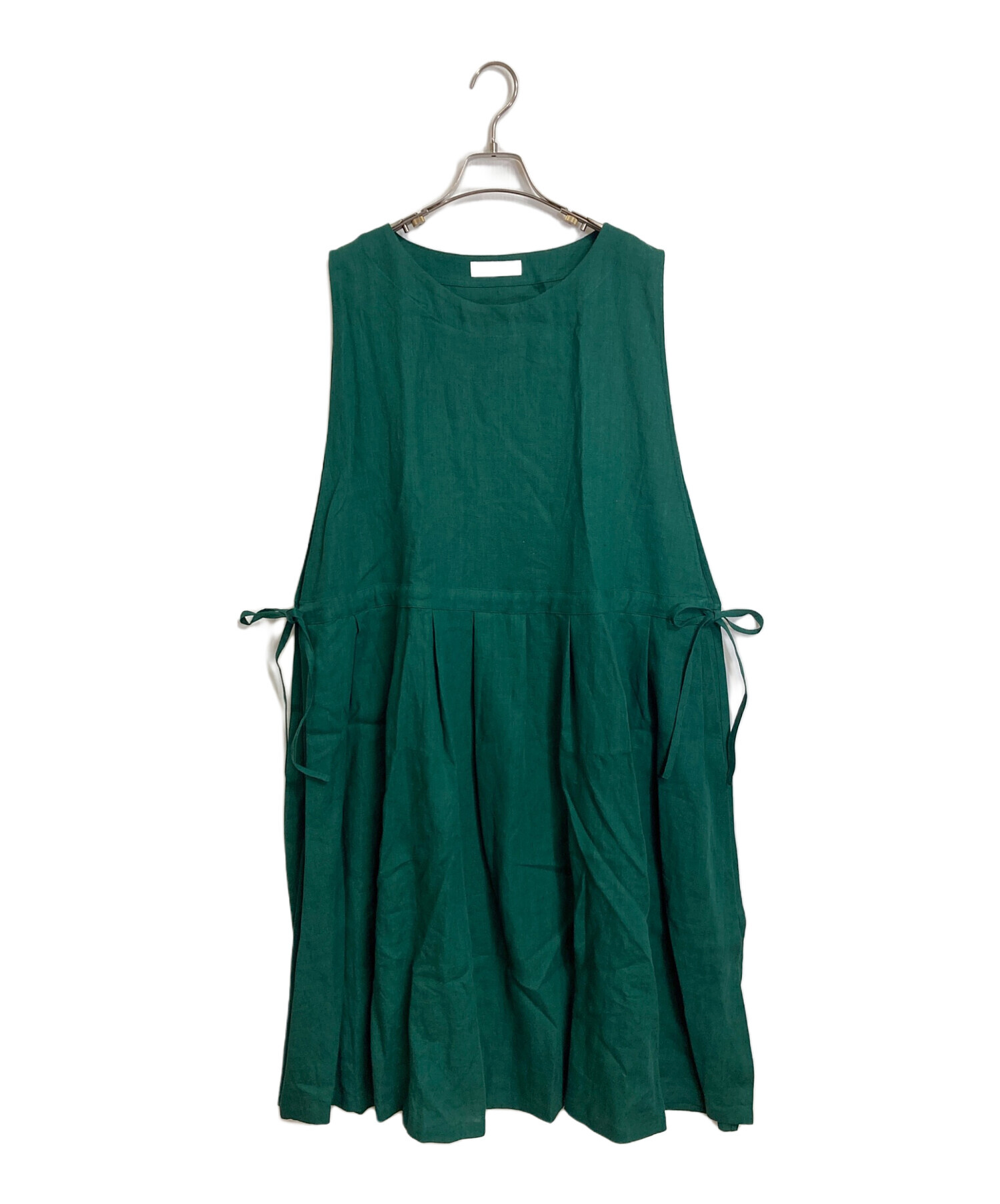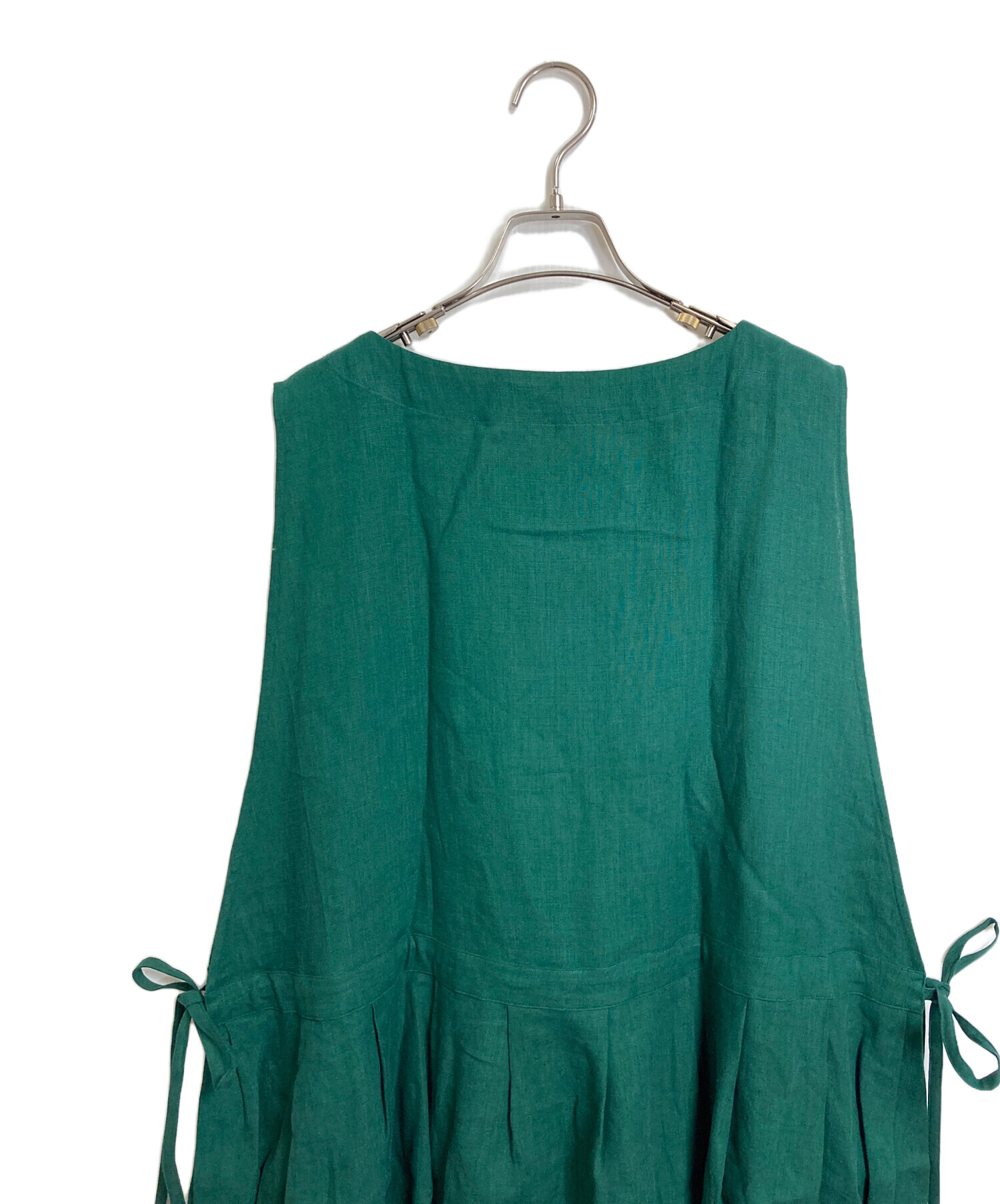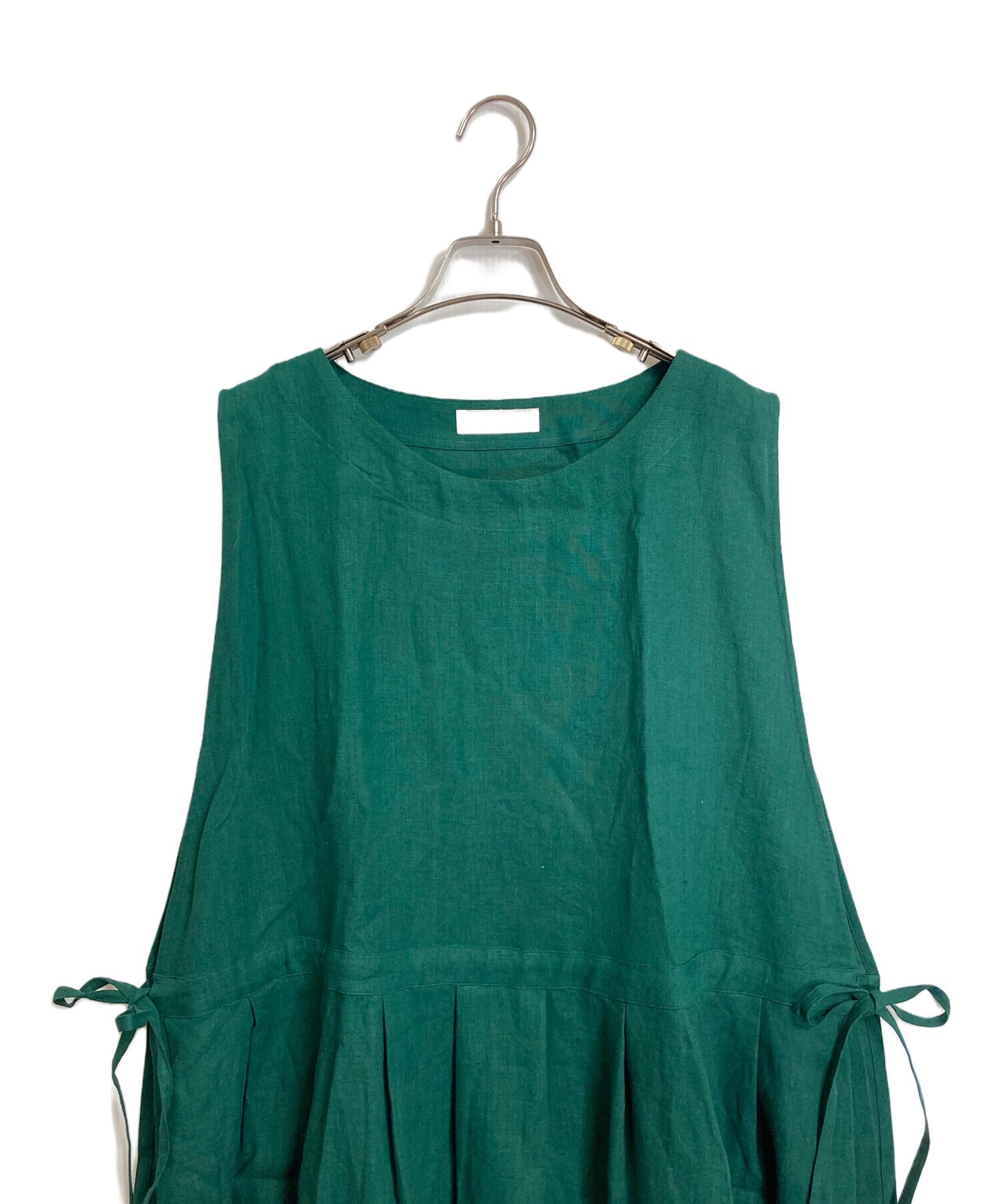 サイドリボンノースリーブリネンワンピース 麻ワンピース ゆったり