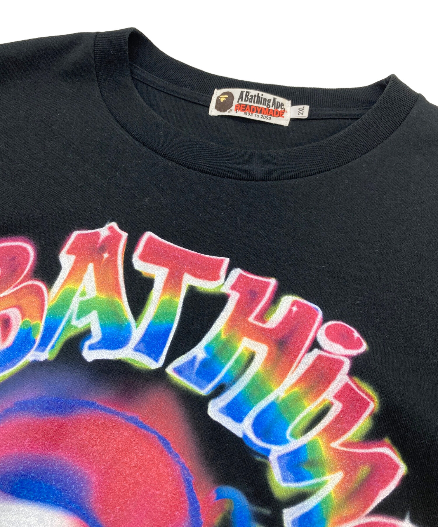 • A BATHING APE(ア ベイシング エイプ)A BATHING APE READYMADE (レディメイド) SPRAY WIDE FIT L/S TEE  スプレーワイドフィットロングスリーブT  ロングスリーブカットソー ロンT   日本製 ブラック サイズ:2XLの古着・服飾アイテム 各所小ヨゴレ・タグヨゴレあり