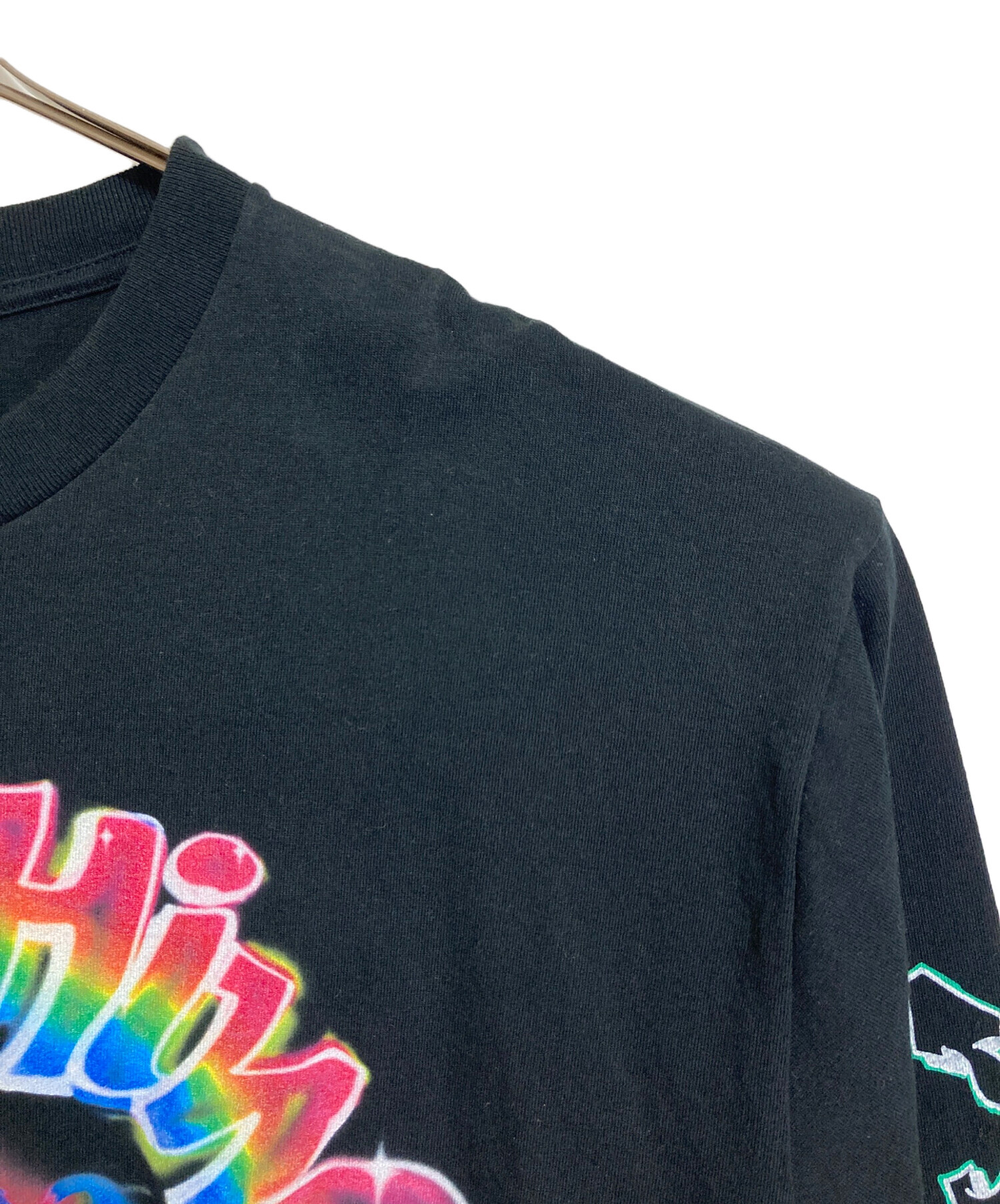 • A BATHING APE(ア ベイシング エイプ)A BATHING APE READYMADE (レディメイド) SPRAY WIDE FIT L/S TEE  スプレーワイドフィットロングスリーブT  ロングスリーブカットソー ロンT   日本製 ブラック サイズ:2XLの古着・服飾アイテム 各所小ヨゴレあり