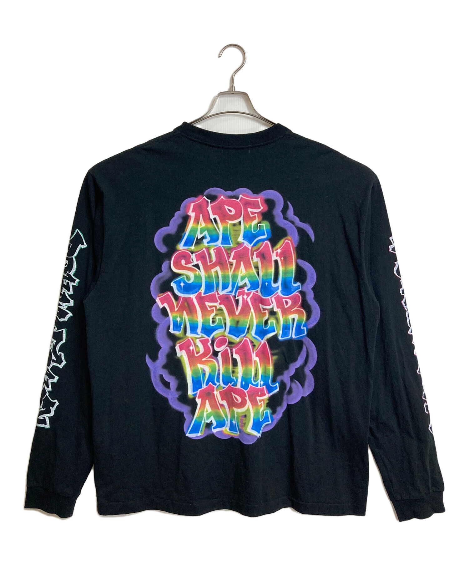 • A BATHING APE(ア ベイシング エイプ)A BATHING APE READYMADE (レディメイド) SPRAY WIDE FIT L/S TEE  スプレーワイドフィットロングスリーブT  ロングスリーブカットソー ロンT   日本製 ブラック サイズ:2XLの古着・服飾アイテム 袖プリント