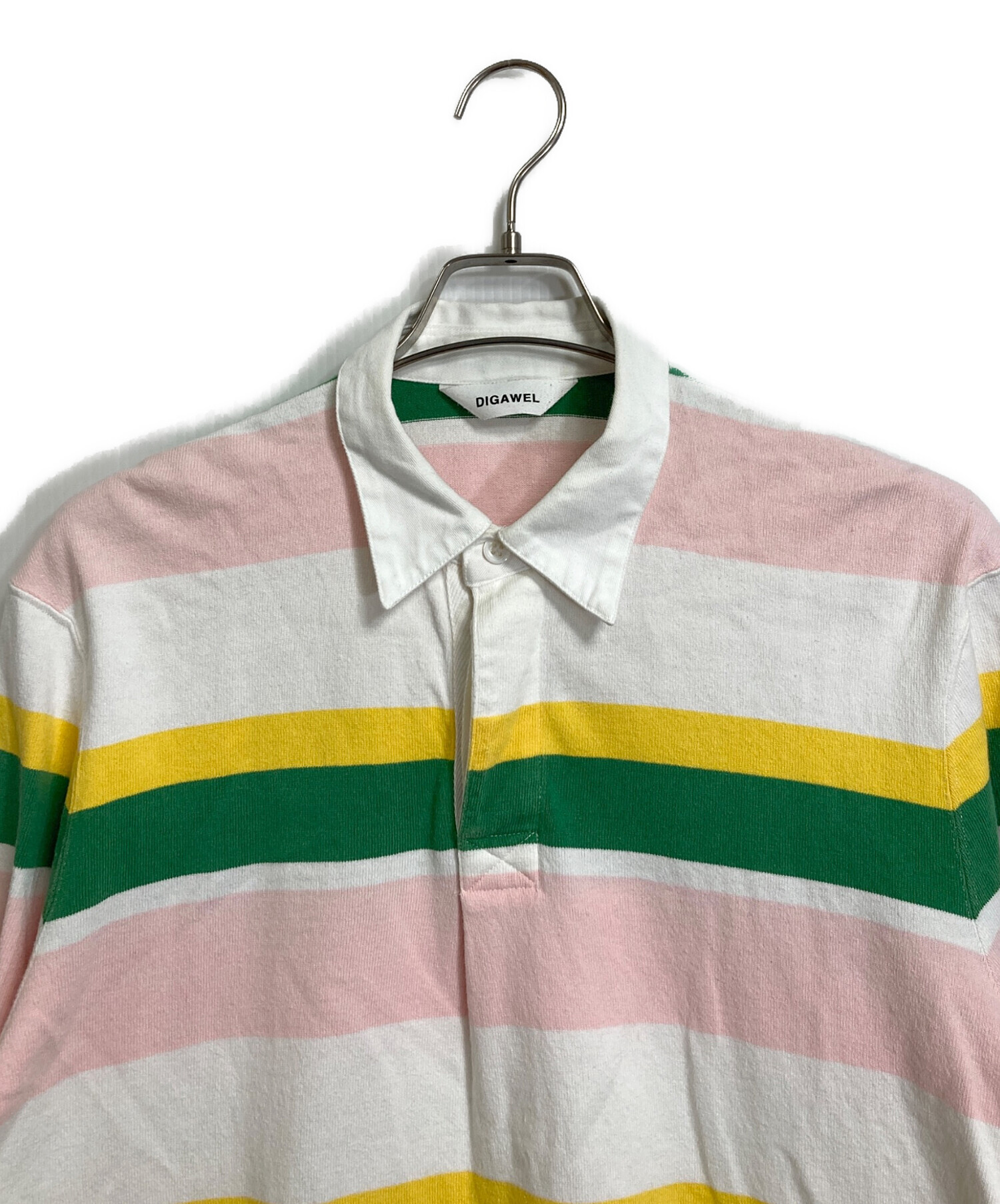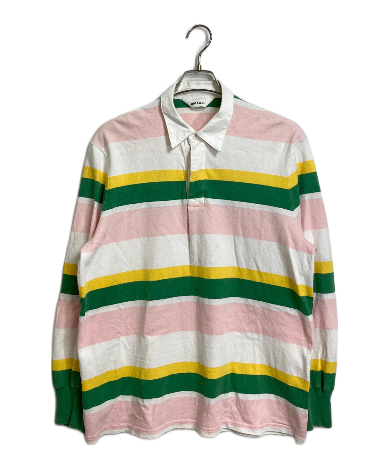 • digawel(ディガウェル)DIGAWEL (ディガウェル) Border Rugby Shirt White ボーダーカットソー ホワイト×イエロー サイズ:1の古着・服飾アイテム 袖裏小ヨゴレや毛玉あり