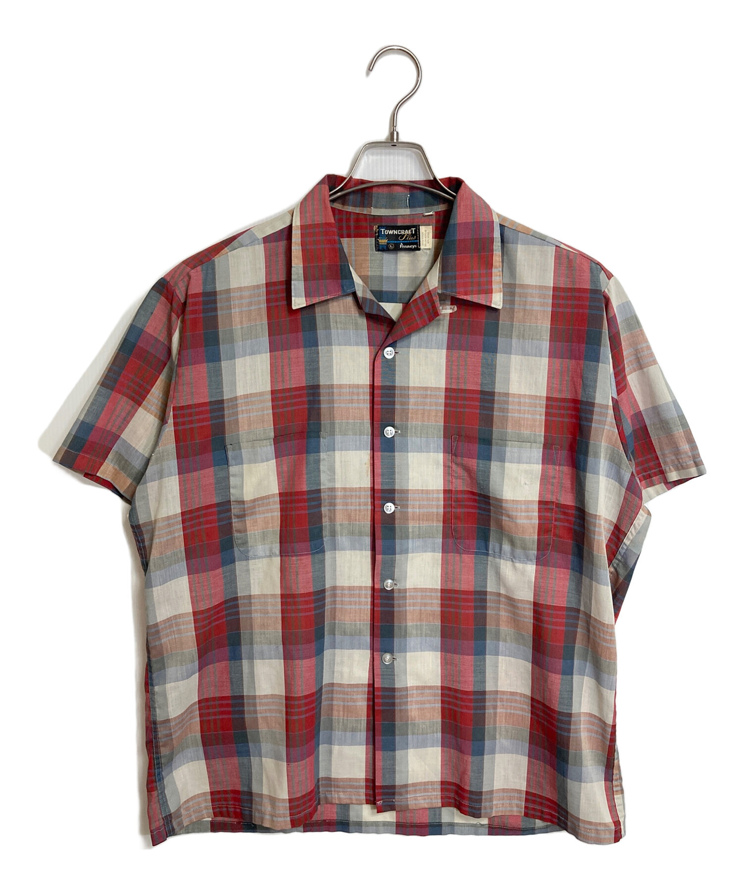 【古着】60’S 半袖チェックシャツ 開襟シャツ オープンカラーシャツ 60年代