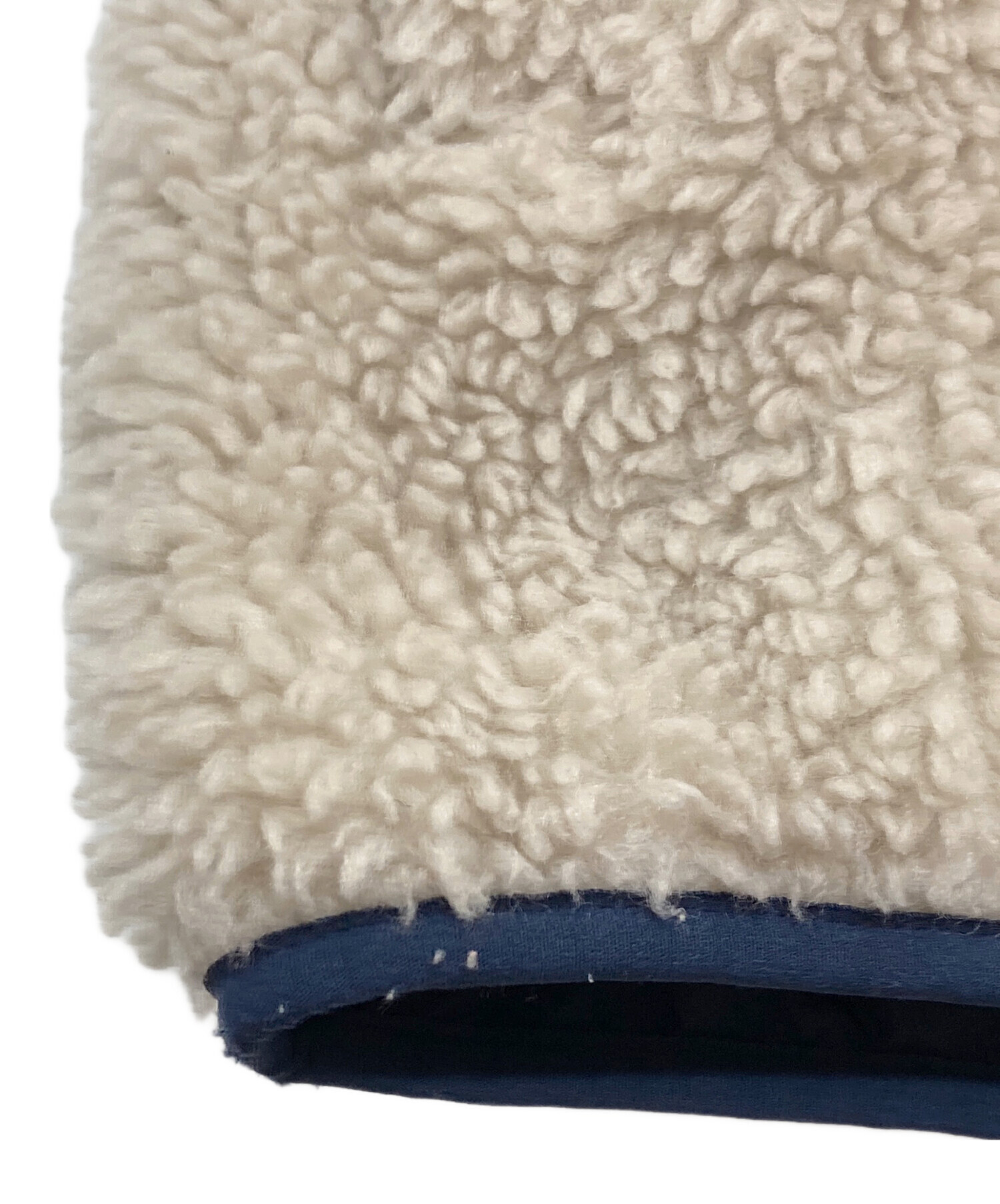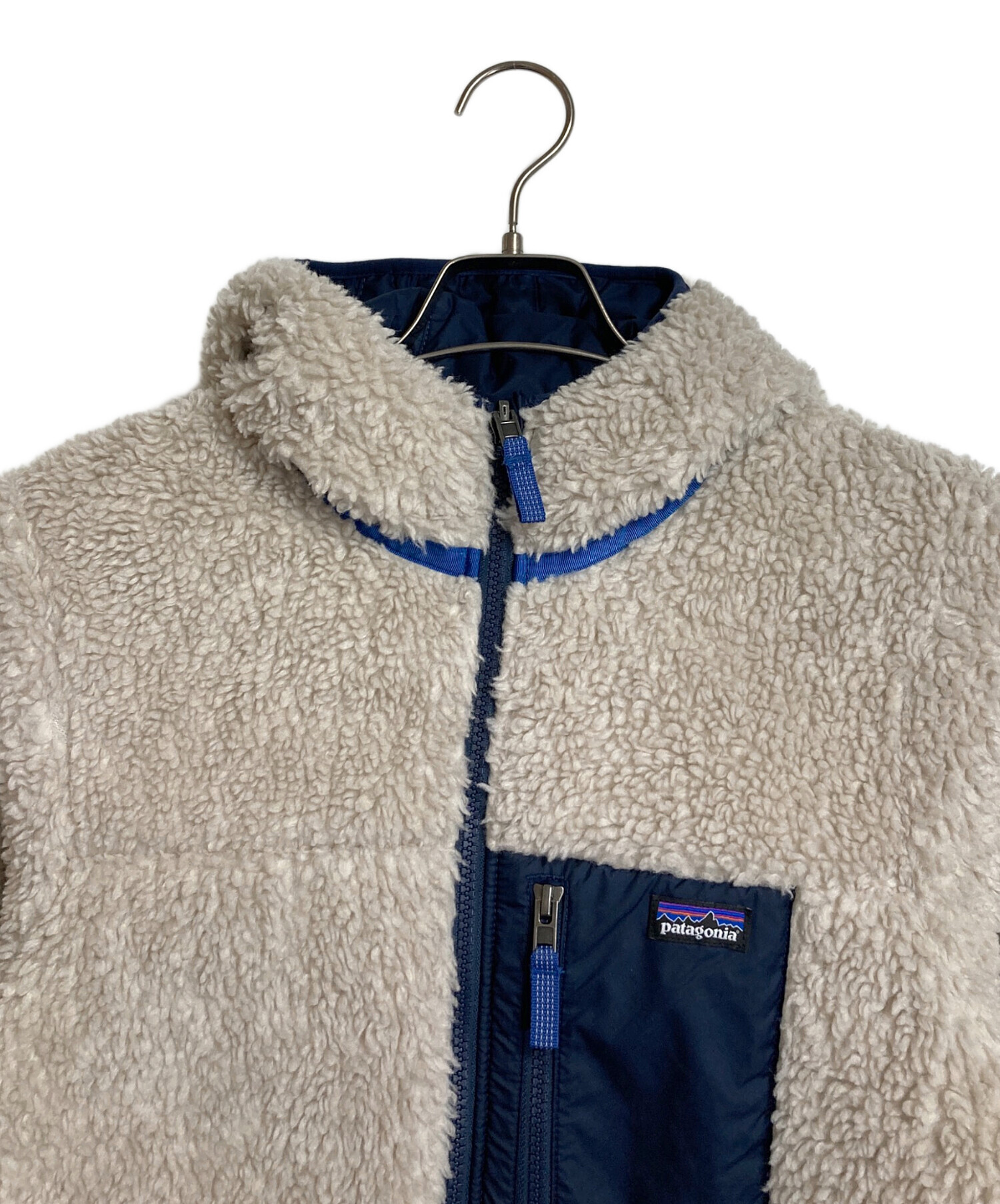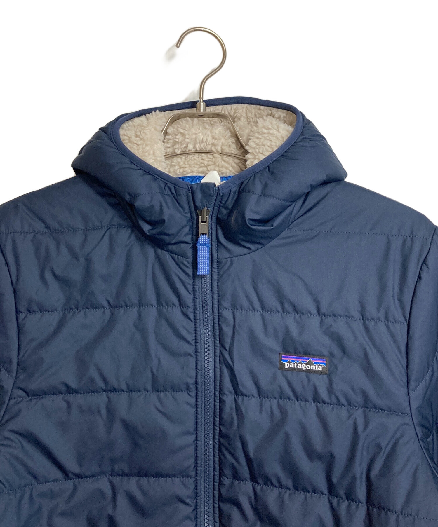 • Patagonia(パタゴニア)Patagonia (パタゴニア) リバーシブル・レディ・フレディ・フーディ 中綿ジャケット ボアジャケット アイボリー×ネイビー サイズ:キッズXXL / レディースS程の古着・服飾アイテム 裾に毛玉あり