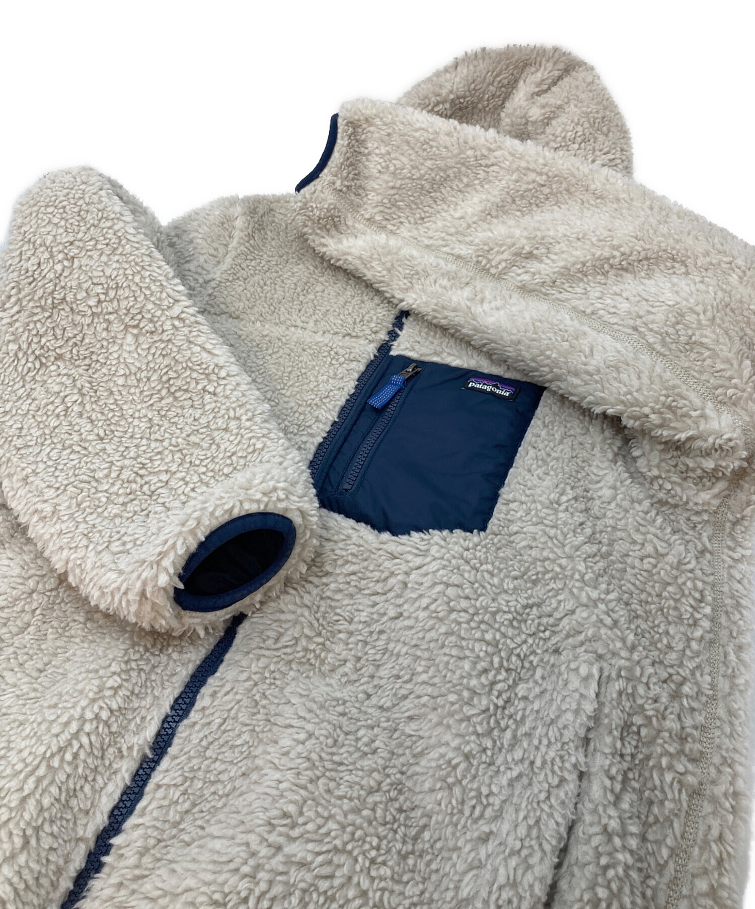 • Patagonia(パタゴニア)Patagonia (パタゴニア) リバーシブル・レディ・フレディ・フーディ 中綿ジャケット ボアジャケット アイボリー×ネイビー サイズ:キッズXXL / レディースS程の古着・服飾アイテム 各所ボア潰れあり