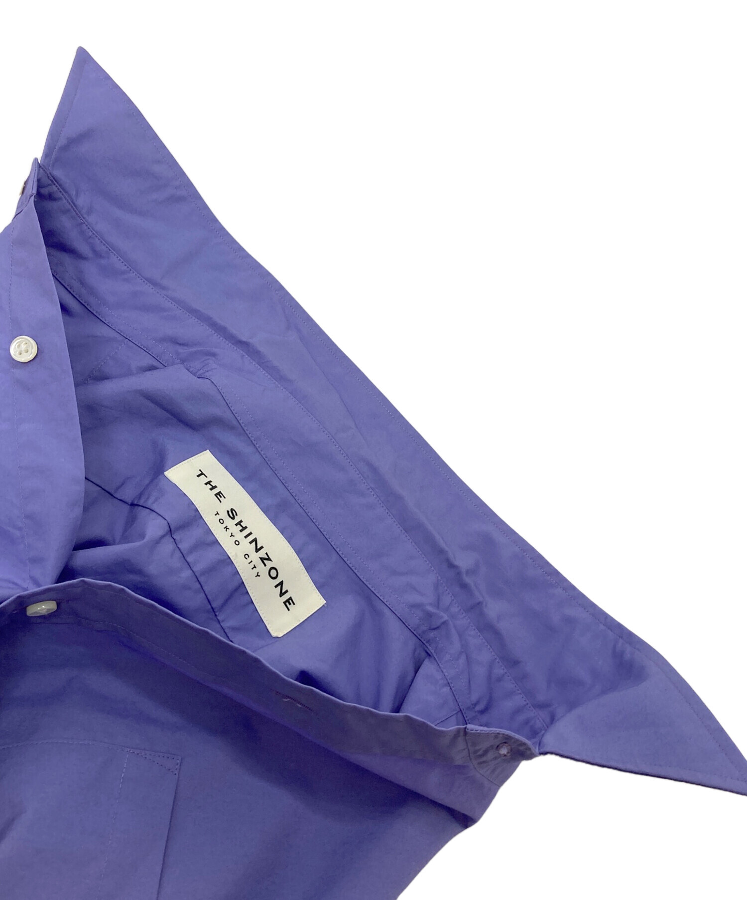• THE SHINZONE(ザ シンゾーン)THE SHINZONE (ザ シンゾーン) ショートシャツ コットンシャツ 日本製 パープル サイズ:36の古着・服飾アイテム 袖に小ヨゴレあり