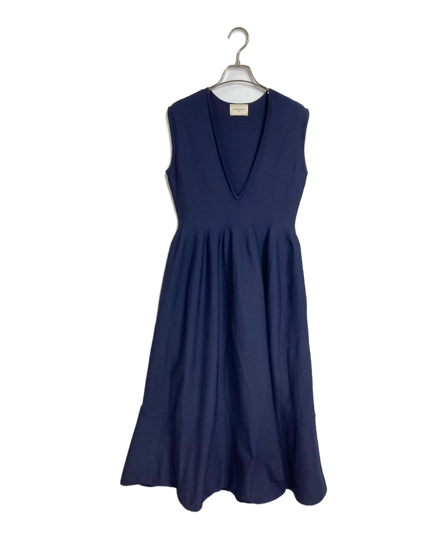 • UNITED ARROWS(ユナイテッドアローズ)UNITED ARROWS (ユナイテッドアローズ) Vネック ロング ニットワンピース ネイビー サイズ:36の古着・服飾アイテム 反りあり