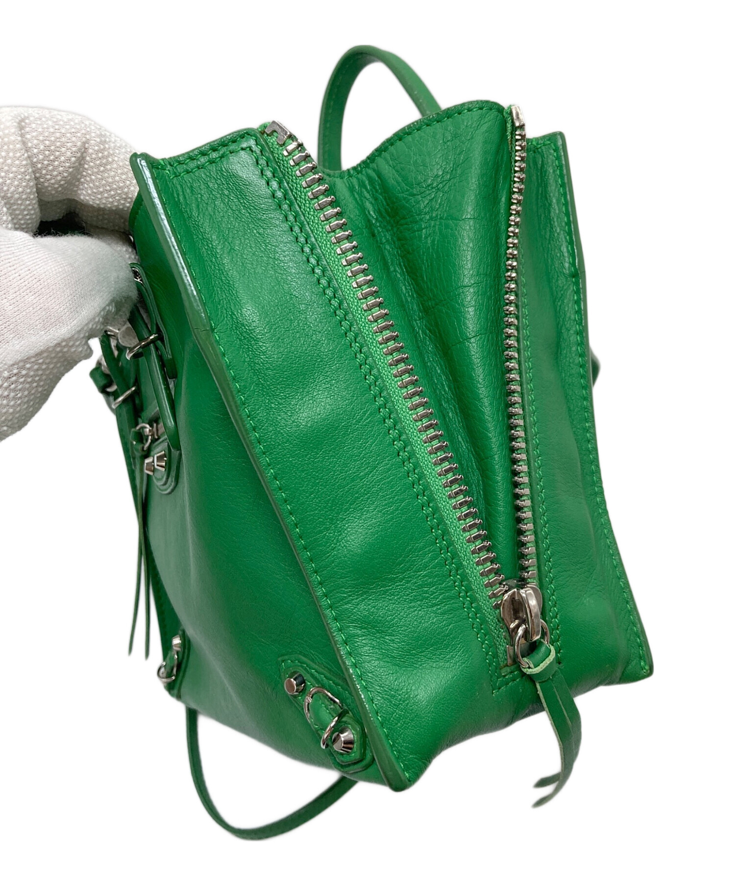 • BALENCIAGA(バレンシアガ)BALENCIAGA (バレンシアガ) ショルダーバッグ ハンドバッグ 2WAYバッグ グリーン サイズ:実寸参照の古着・服飾アイテム 角スレあり
