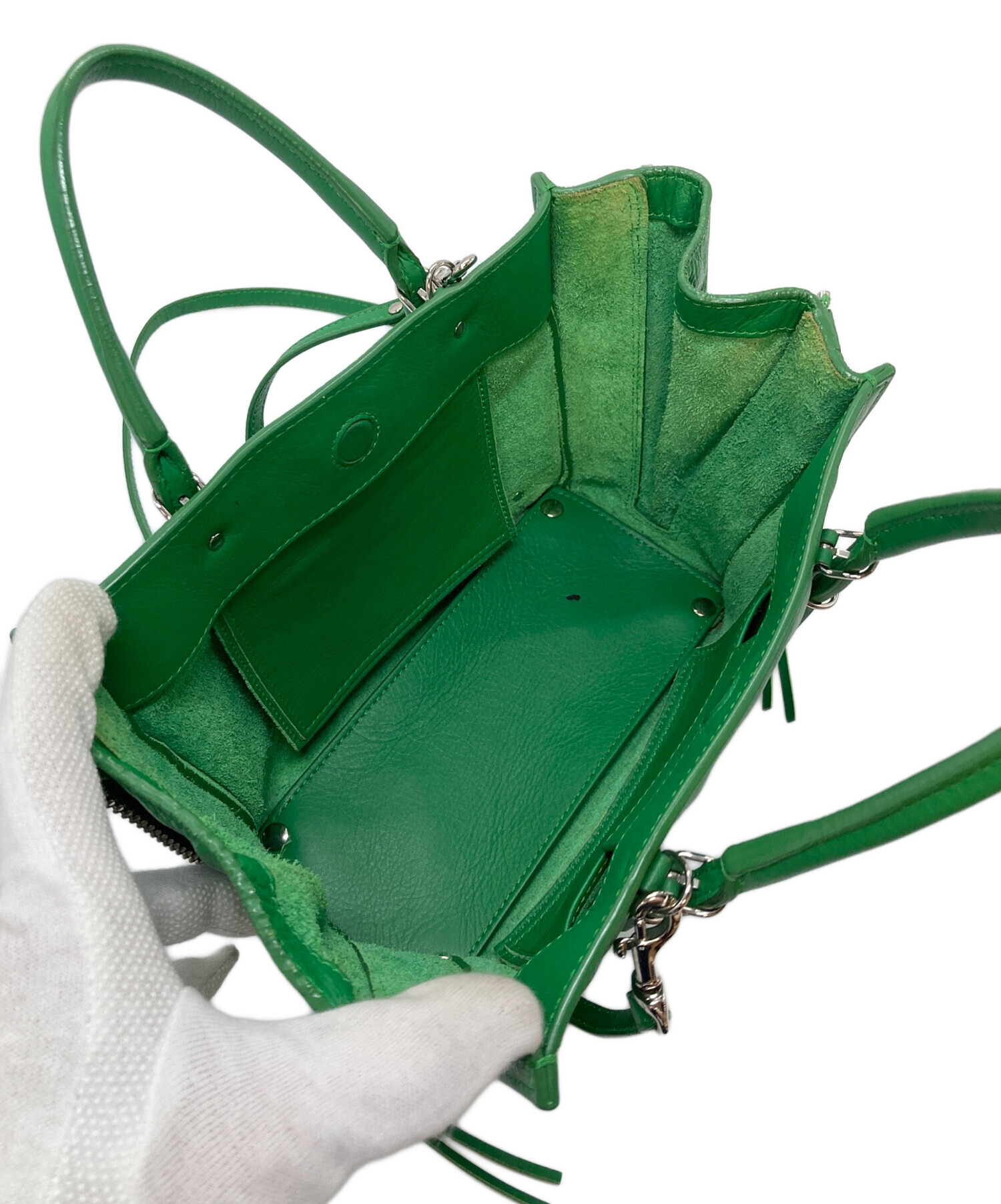 • BALENCIAGA(バレンシアガ)BALENCIAGA (バレンシアガ) ショルダーバッグ ハンドバッグ 2WAYバッグ グリーン サイズ:実寸参照の古着・服飾アイテム 内部ヨゴレあり