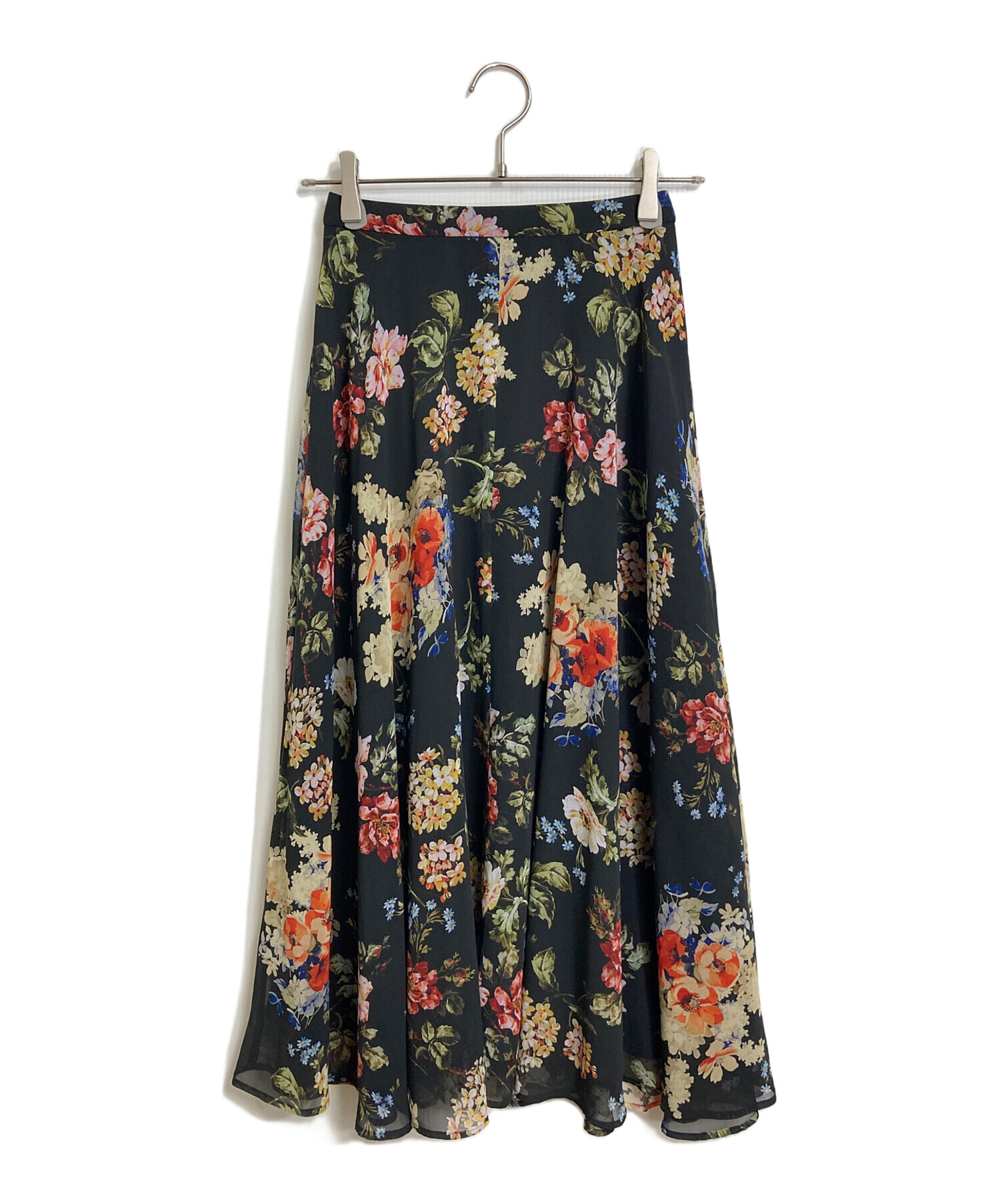 • UNTITLED(アンタイトル)UNTITLED (アンタイトル) アンティークフラワー柄スカート ロングスカート フラワープリント 花柄 日本製 手洗い可 ブラック サイズ:01/Sの古着・服飾アイテム