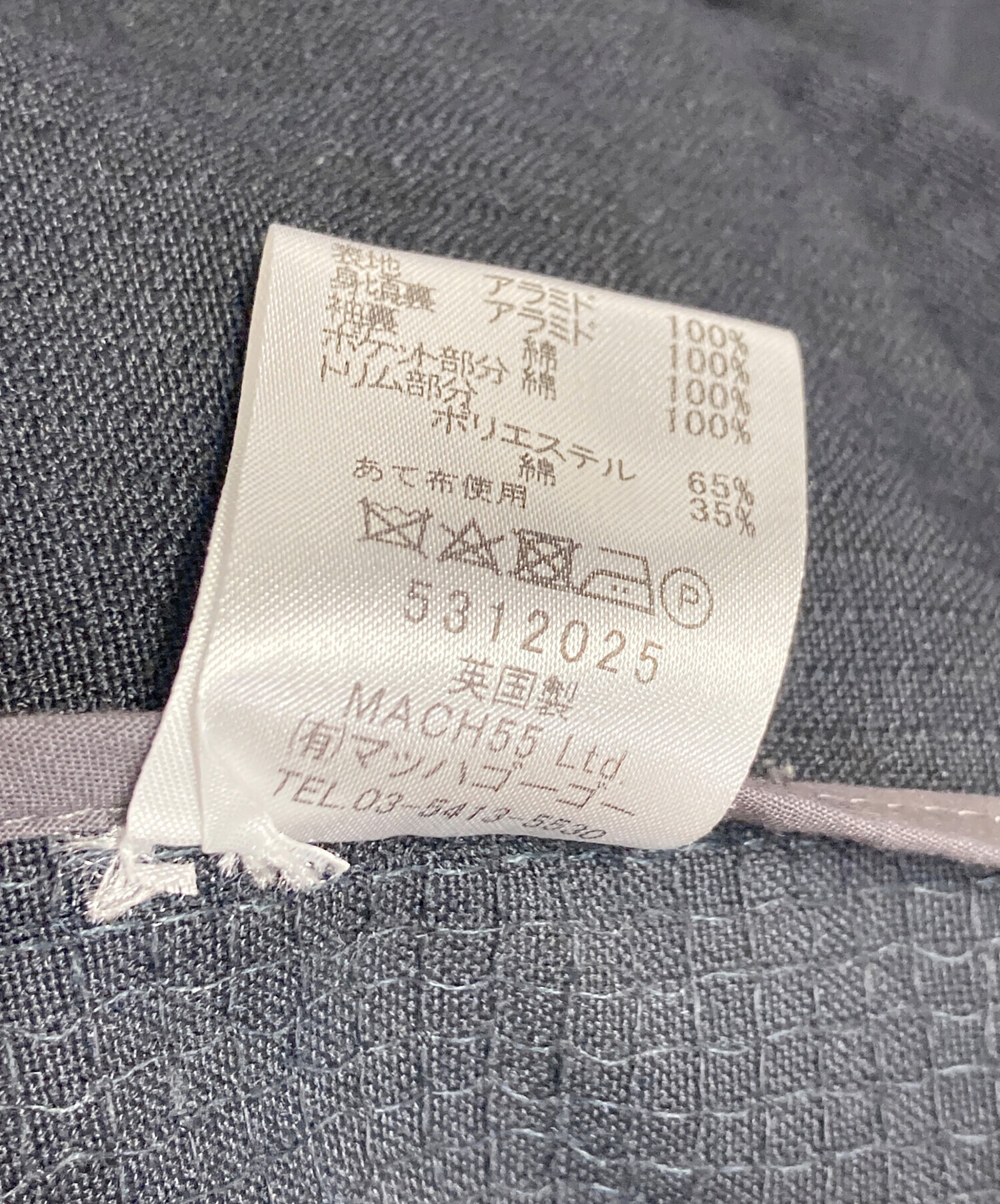 | 素材 | 表地: アラミド 100% 身頃裏: アラミド100% 袖裏部分: 綿 100% ポケット部分; 綿100% トリム部分: ポリエステル 65% 綿 35% |
