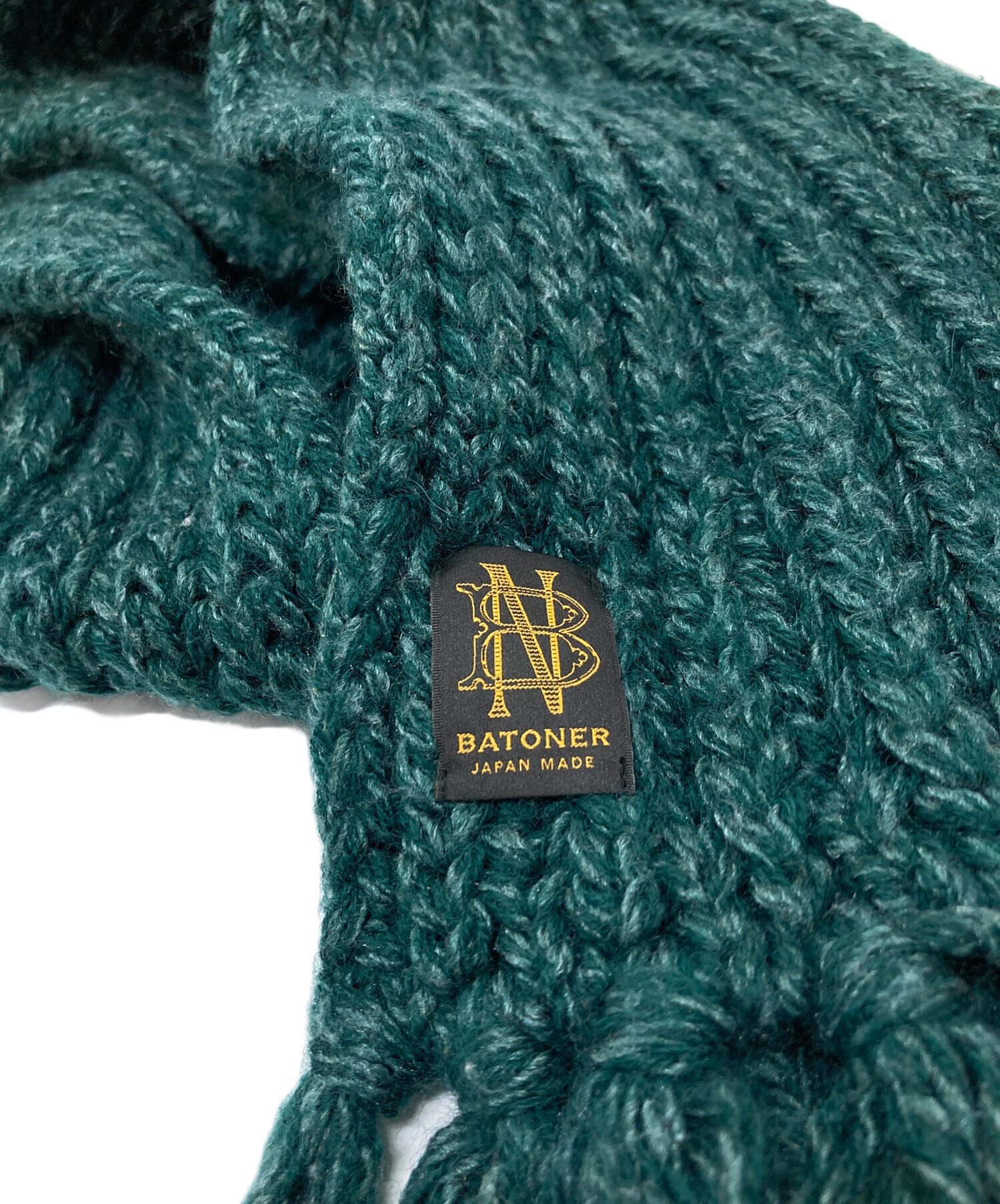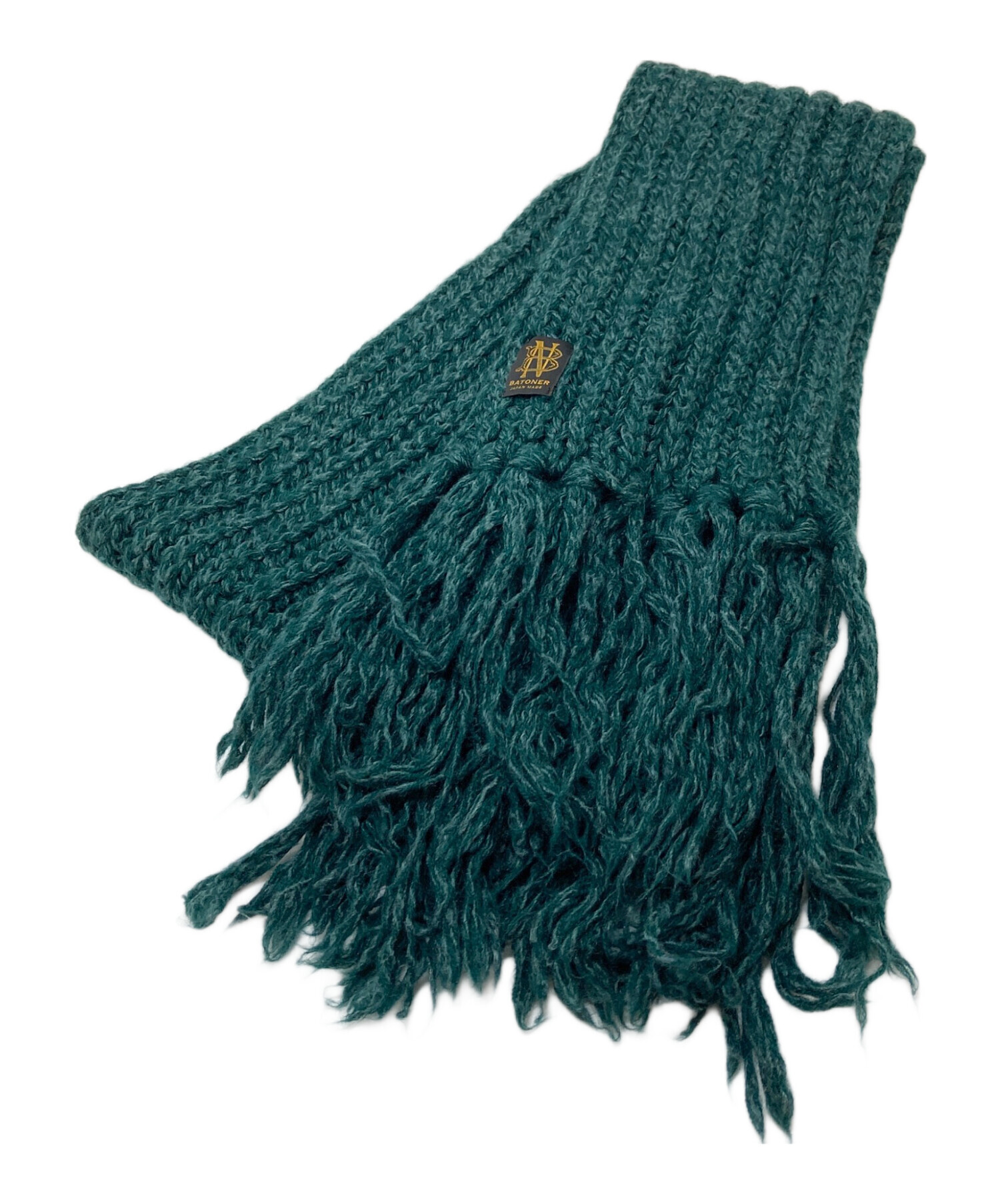 • BATONER(バトナ―)BATONER (バトナ―) ローゲージフリンジマフラー ニットマフラー 日本製 グリーン サイズ:実寸参照の古着・服飾アイテム ニット特有の毛羽立ち感あり