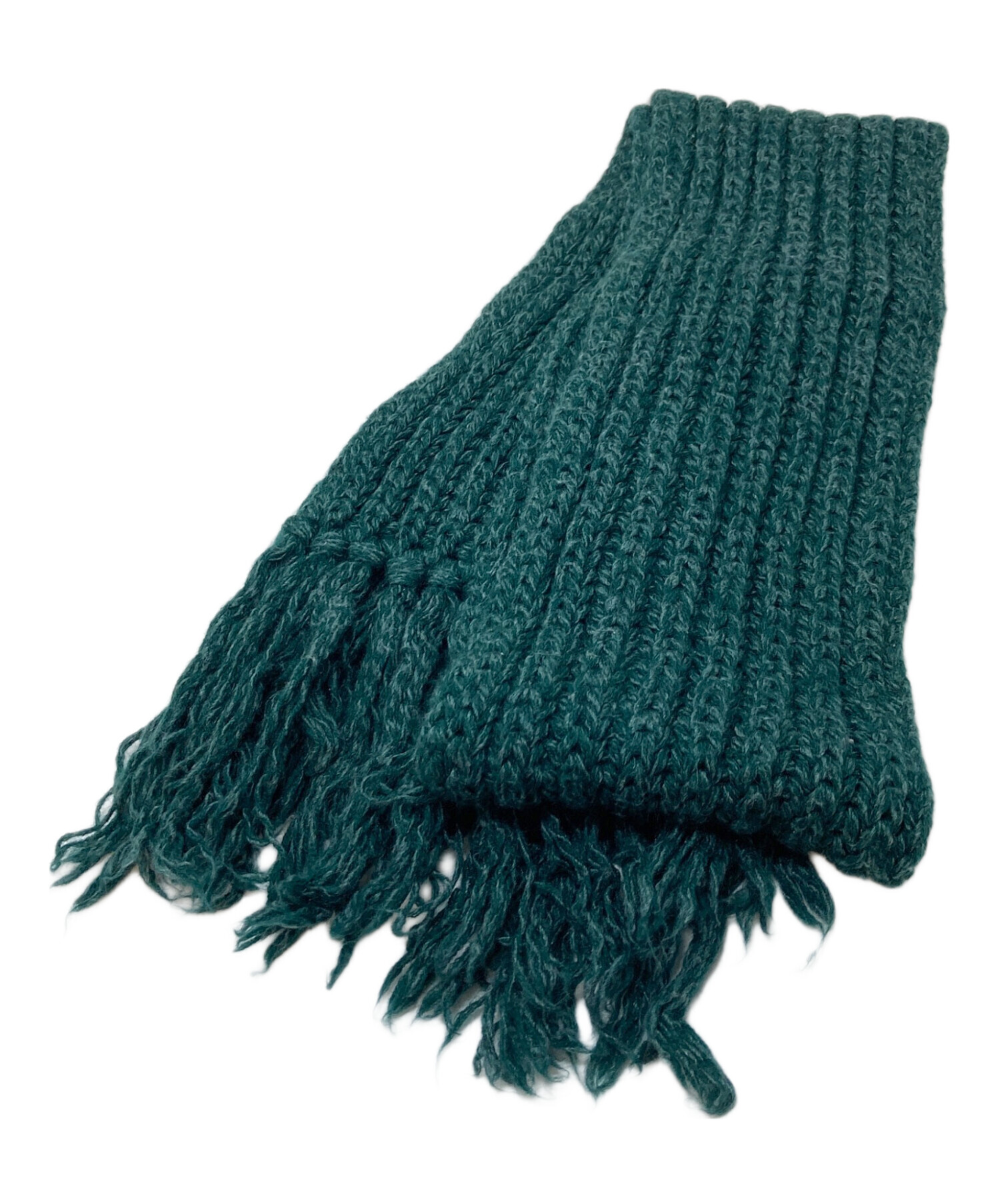 • BATONER(バトナ―)BATONER (バトナ―) ローゲージフリンジマフラー ニットマフラー 日本製 グリーン サイズ:実寸参照の古着・服飾アイテム