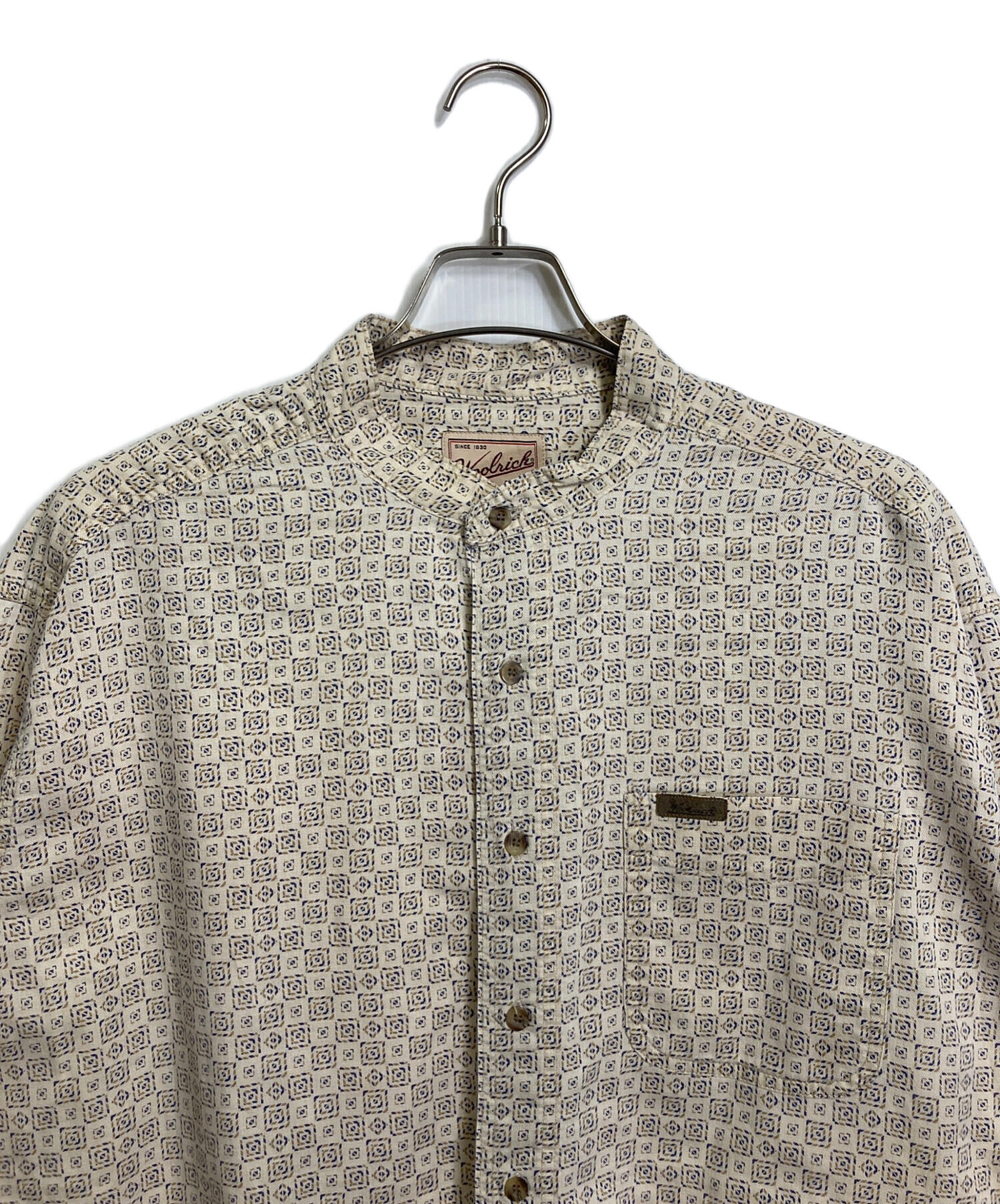 • WOOLRICH(ウールリッチ)WOOLRICH (ウールリッチ) 【古着】ノーカラーシャツ コットンシャツ メキシコ製 アイボリー サイズ:2XLの古着・服飾アイテム 印字かすれあり
