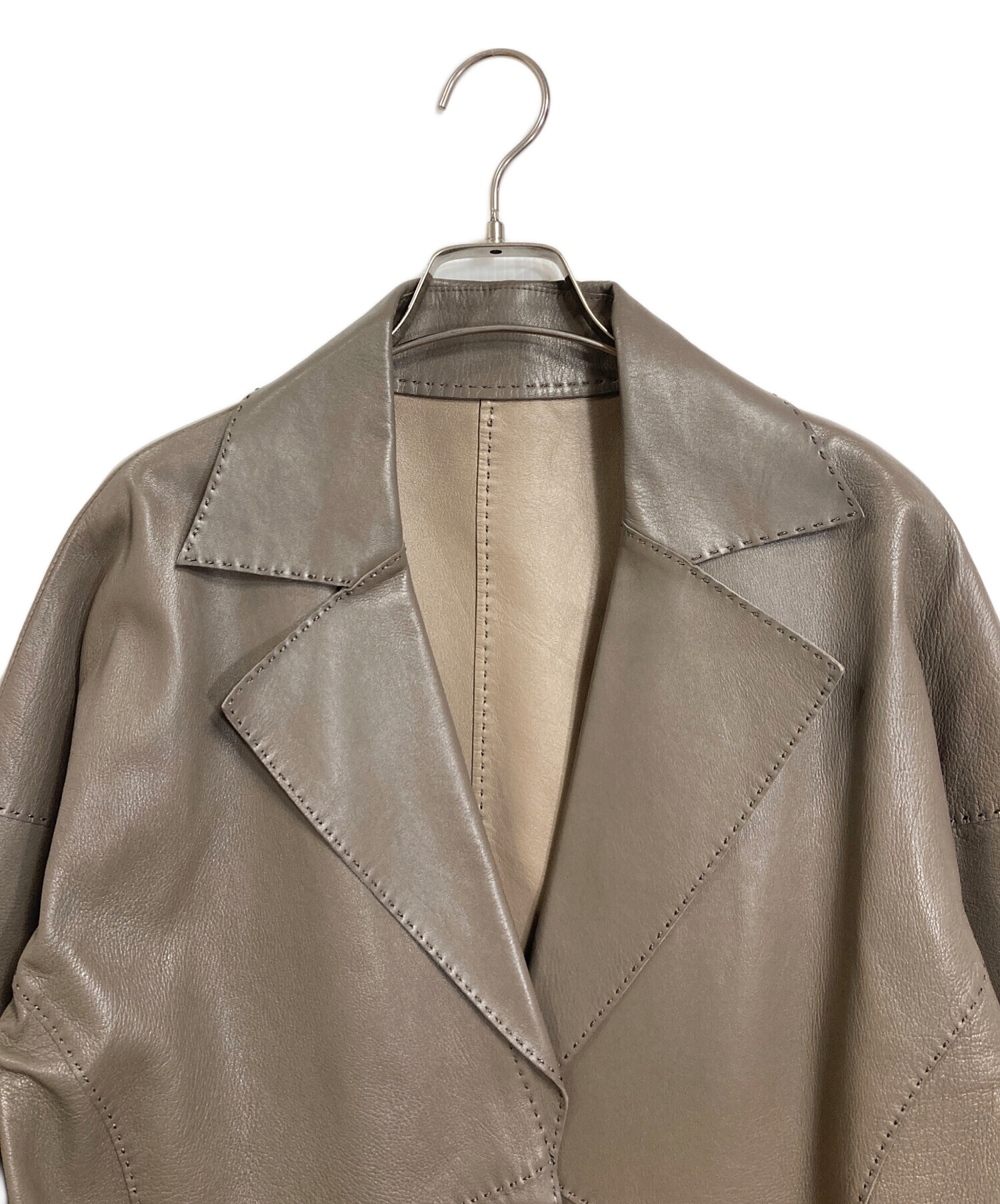 • DAMA collection(ダーマコレクション)DAMA collection (ダーマコレクション) ラムレザーコート ロングコート ベージュ サイズ:2の古着・服飾アイテム 背面小ヨゴレあり