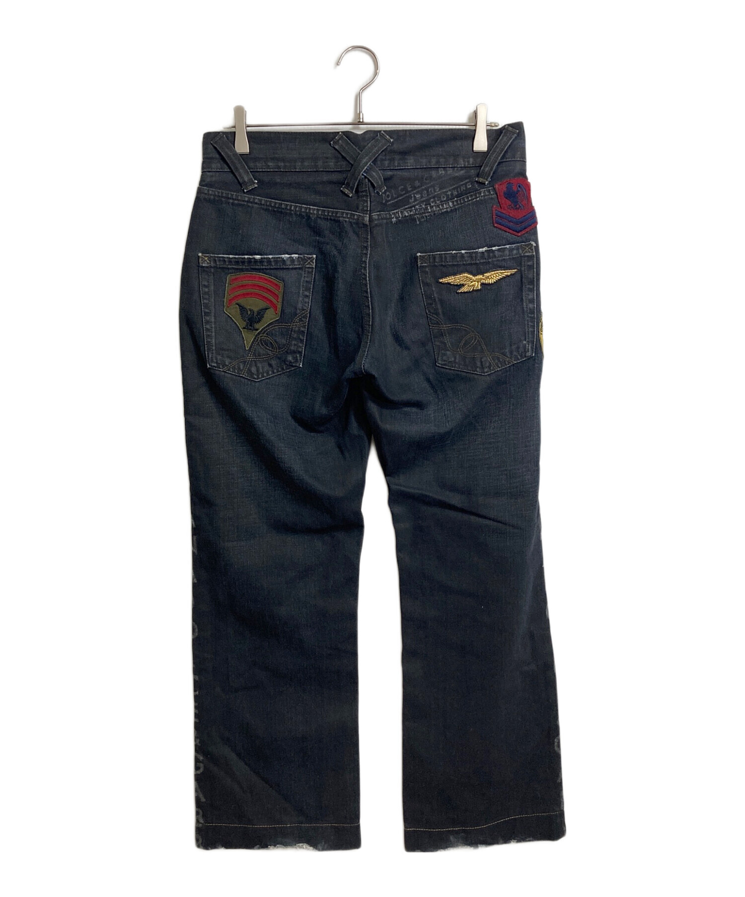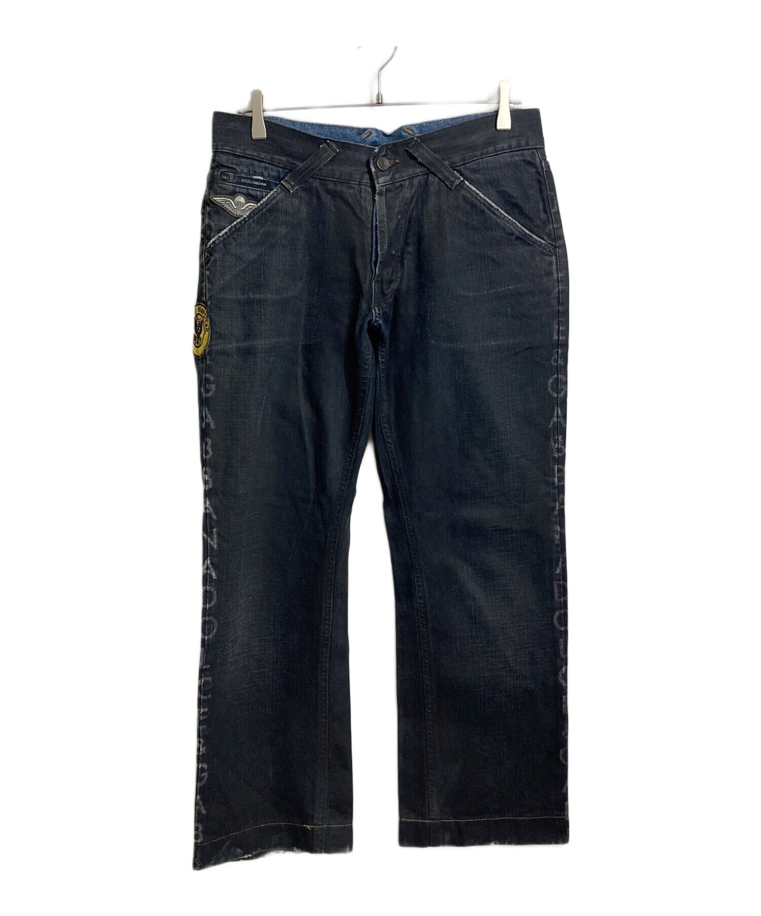 • DOLCE & GABBANA(ドルチェ&ガッバーナ)DOLCE & GABBANA (ドルチェ&ガッバーナ) ミリタリーワッペンサイドロゴ後染デニムパンツ ブラック サイズ:48の古着・服飾アイテム ワッペン部分毛玉や小ヨゴレあり