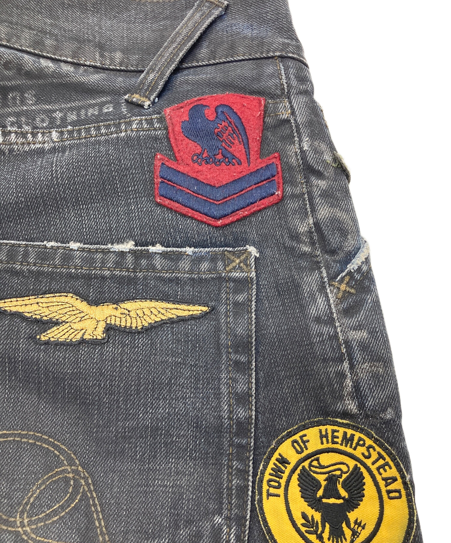 ミリタリーワッペンサイドロゴ後染デニムパンツ