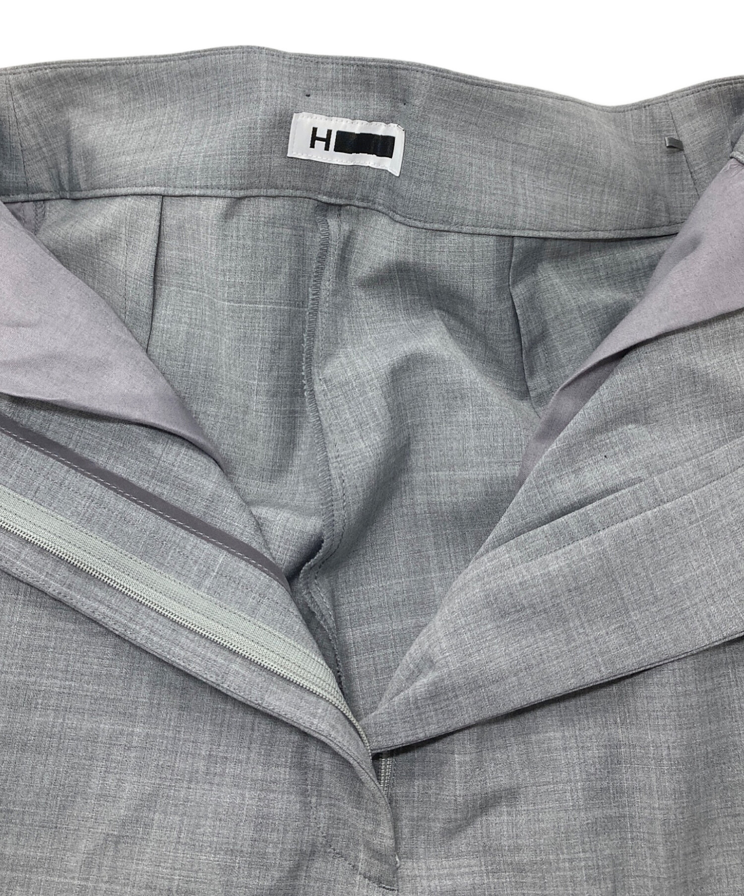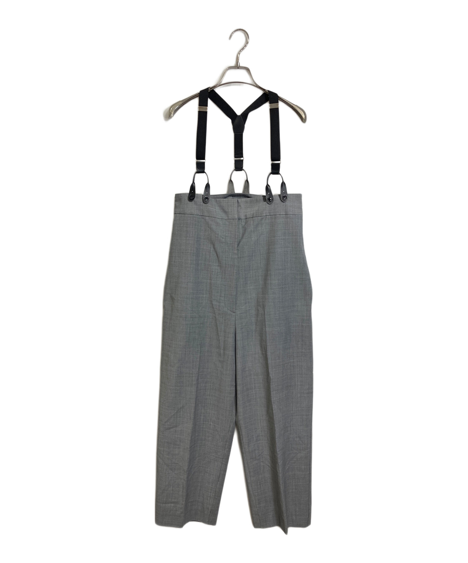 • H BEAUTY&YOUTH(エイチ ビューティー&ユース)H BEAUTY&YOUTH (エイチ ビューティー&ユース) トロピカルハイウエストサスペンダーパンツ サスペンダー 日本製 グレー サイズ:Sの古着・服飾アイテム 裾裏ヨゴレあり