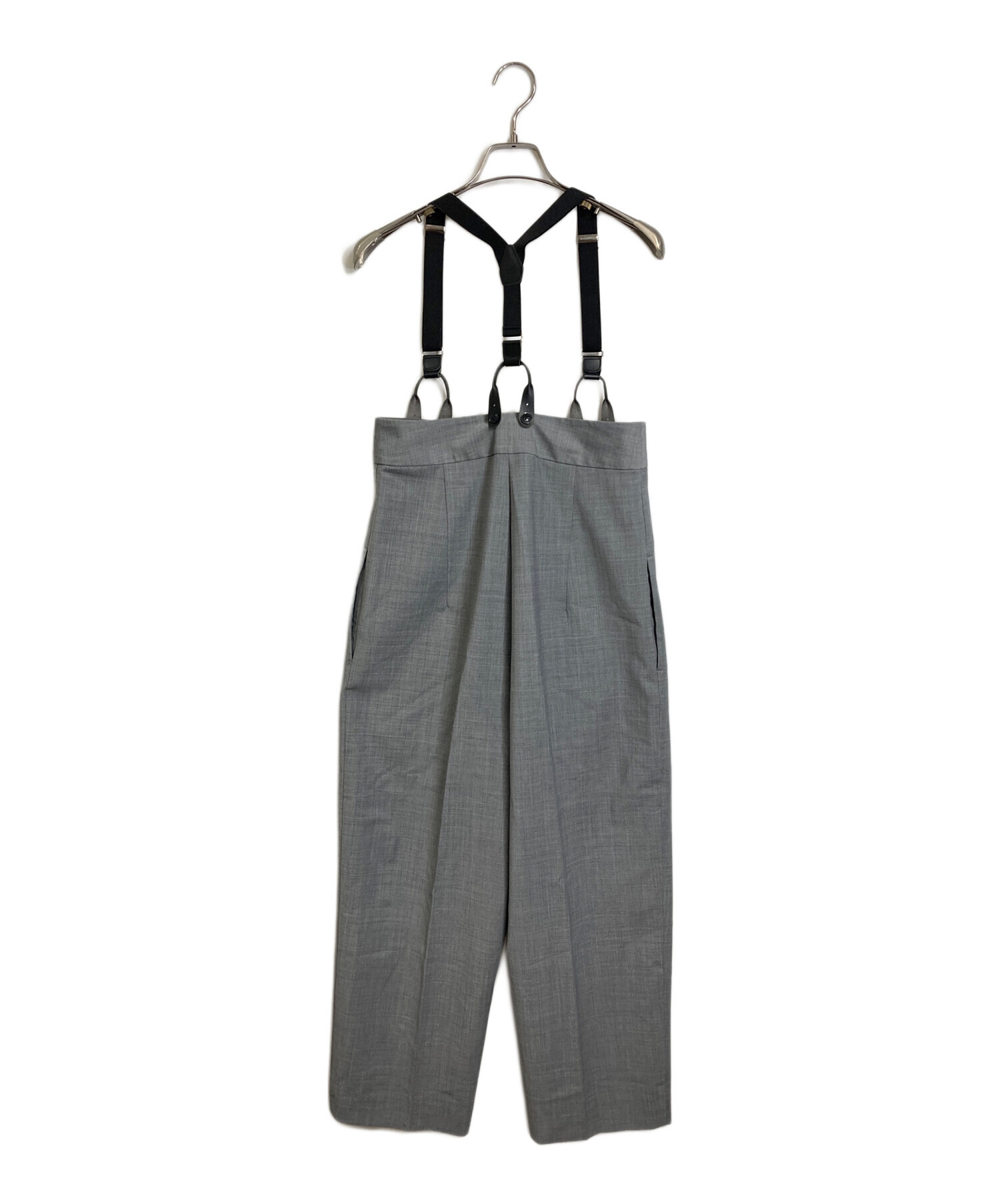 • H BEAUTY&YOUTH(エイチ ビューティー&ユース)H BEAUTY&YOUTH (エイチ ビューティー&ユース) トロピカルハイウエストサスペンダーパンツ サスペンダー 日本製 グレー サイズ:Sの古着・服飾アイテム シワあり