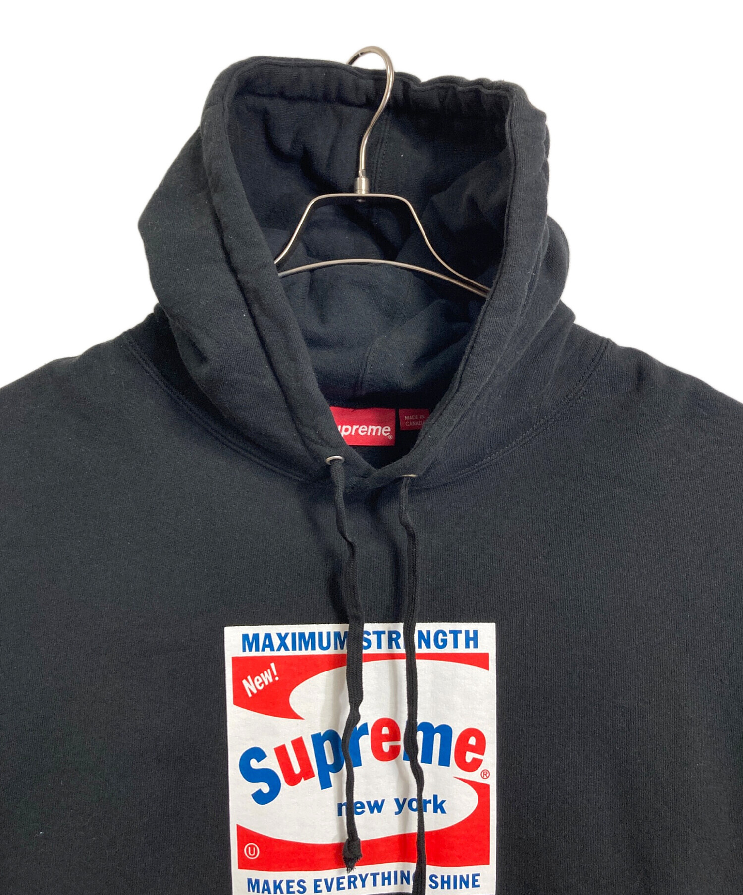 • SUPREME(シュプリーム)Supreme (シュプリーム) Shine Hooded Sweatshirt フーデッドスウェットシャツ フーディ パーカー 21SS  カナダ製 ブラック サイズ:XLの古着・服飾アイテム ドローコードうねりあり