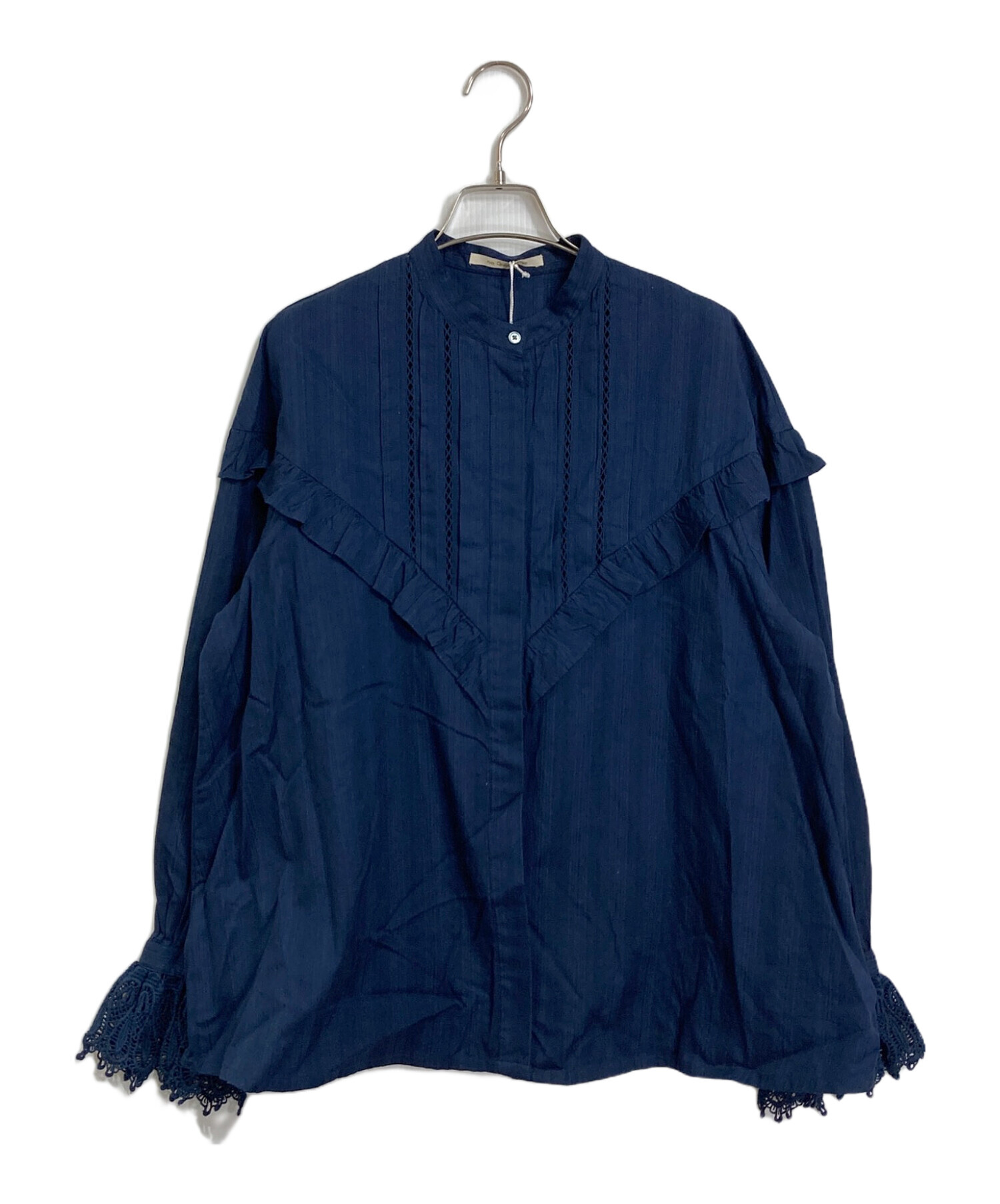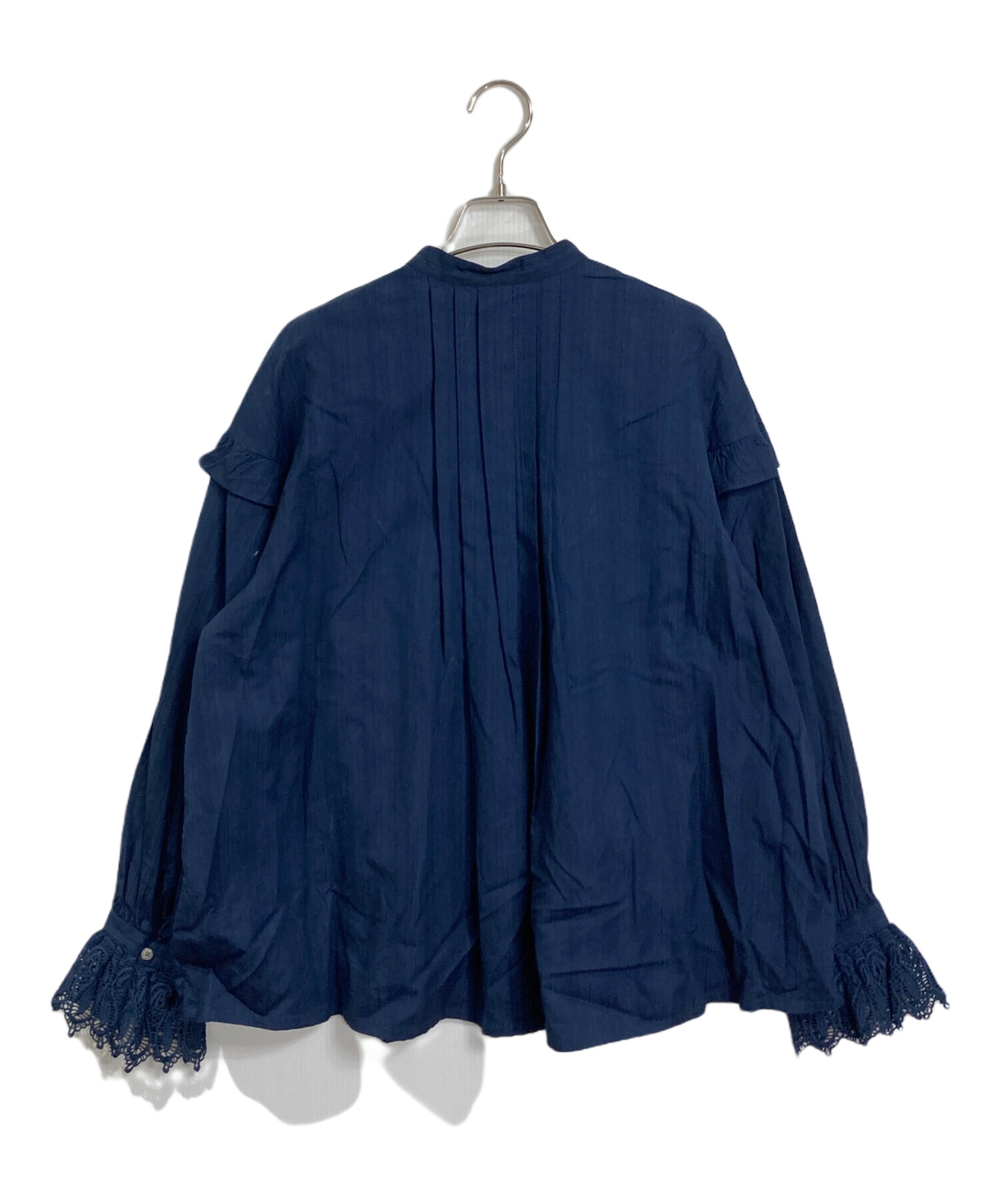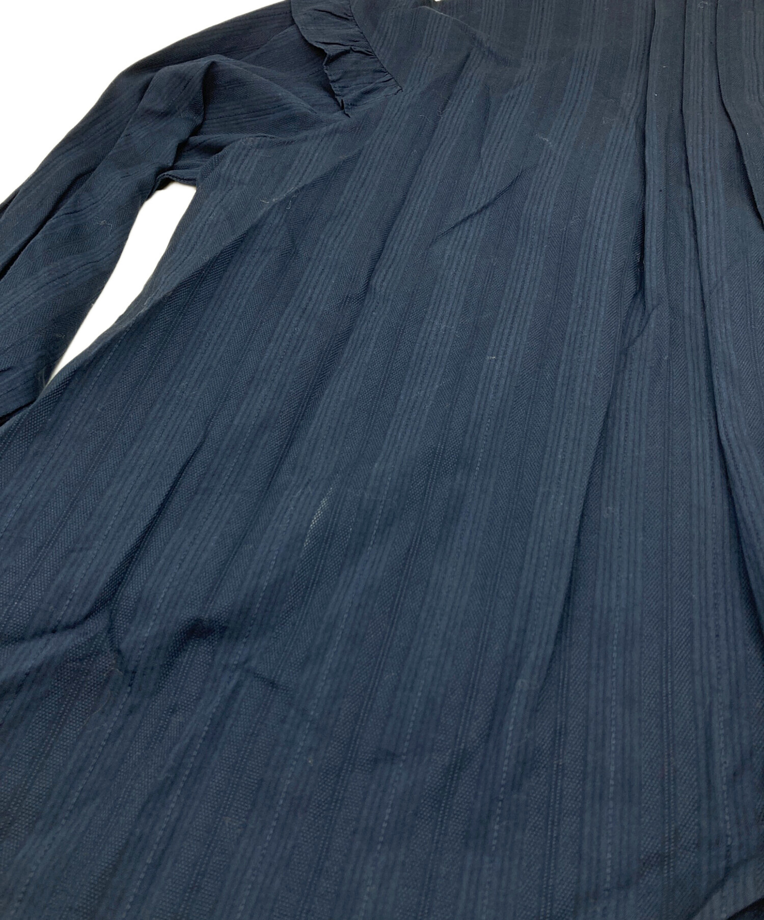 • ne quittez pas(ヌキテパ)ne quittez pas (ヌキテパ) COTTON DOBBY STRIPE FRILL CUFF SHIRTS ネイビー サイズ:実寸参照の古着・服飾アイテム 背面小ヨゴレあり