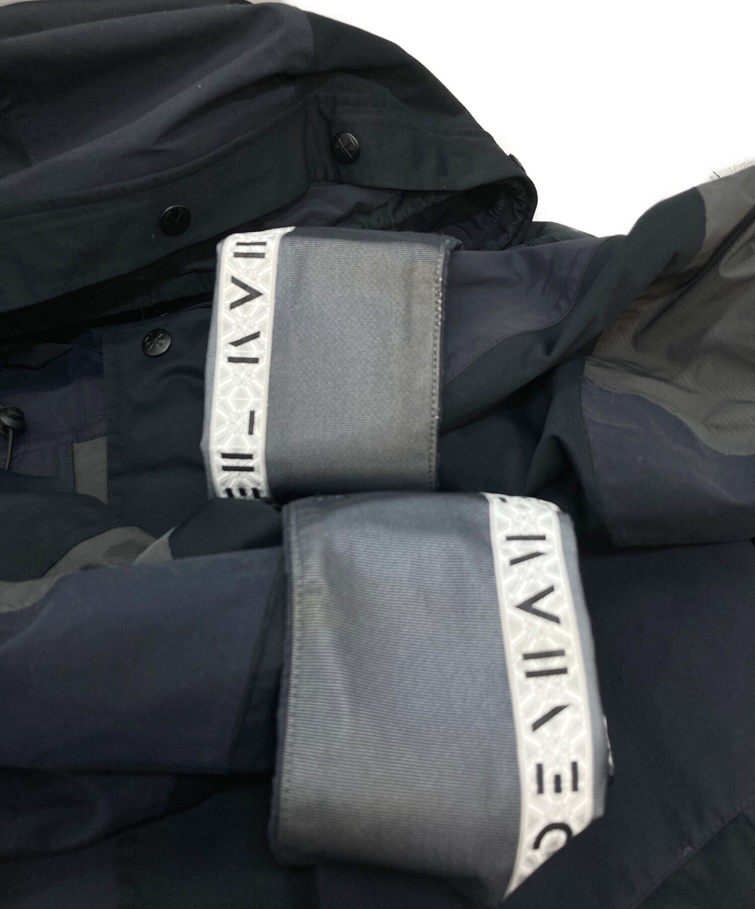 • WHITE MOUNTAINEERING(ホワイトマウンテ二アニング)WHITE MOUNTAINEERING (ホワイトマウンテ二アニング) Denham (デンハム) WM SAITOS MOUNTAIN ブラック サイズ:1の古着・服飾アイテム フードヨゴレあり