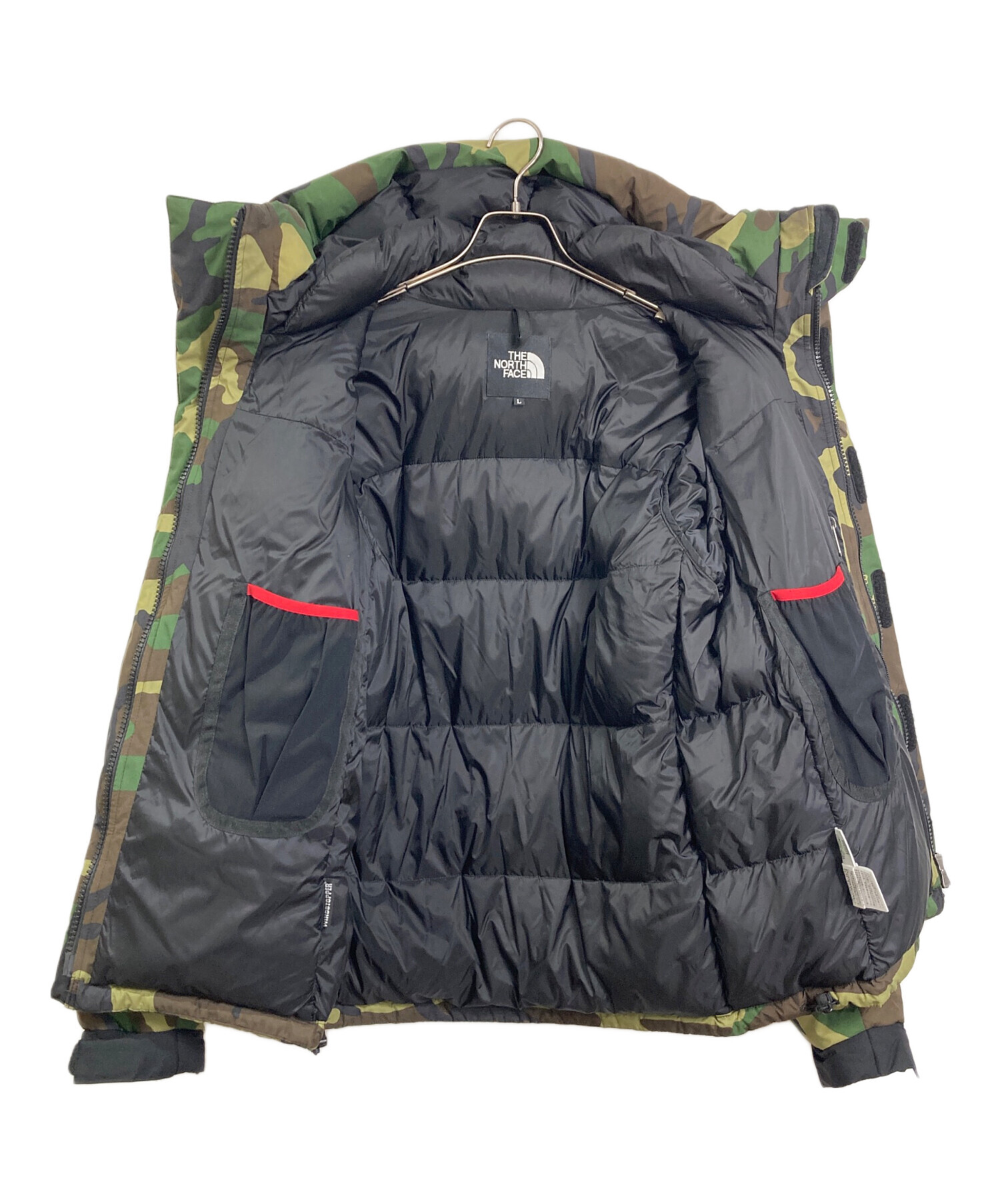 • THE NORTH FACE(ザ ノース フェイス)THE NORTH FACE Novelty Baltro Light Jacket  ノベルティ バルトロ ライト ジャケット アウター ダウンジャケット スポーツ アウトドア カモフラ 迷彩 グリーン サイズ:Lの古着・服飾アイテム マジックテープ使用感あり