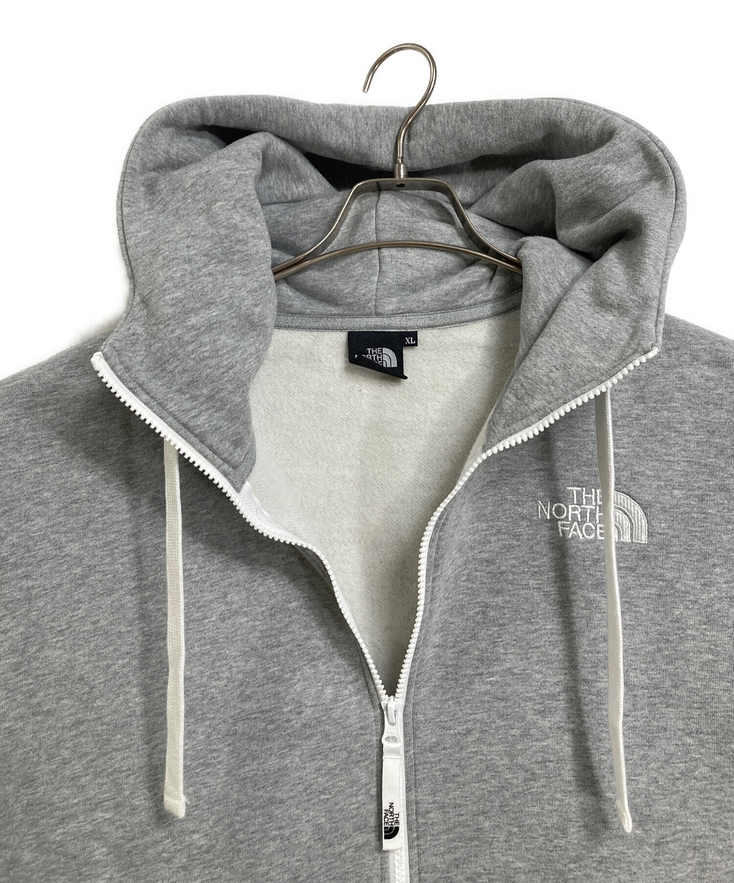 • THE NORTH FACE(ザ ノース フェイス)THE NORTH FACE (ザ ノース フェイス) REARVIEW FULL ZIP HOODIE フードロゴ 刺繍ロゴジップパーカー スポーツ アウトドア グレー サイズ:XLの古着・服飾アイテム 背面袖ヨゴレあり
